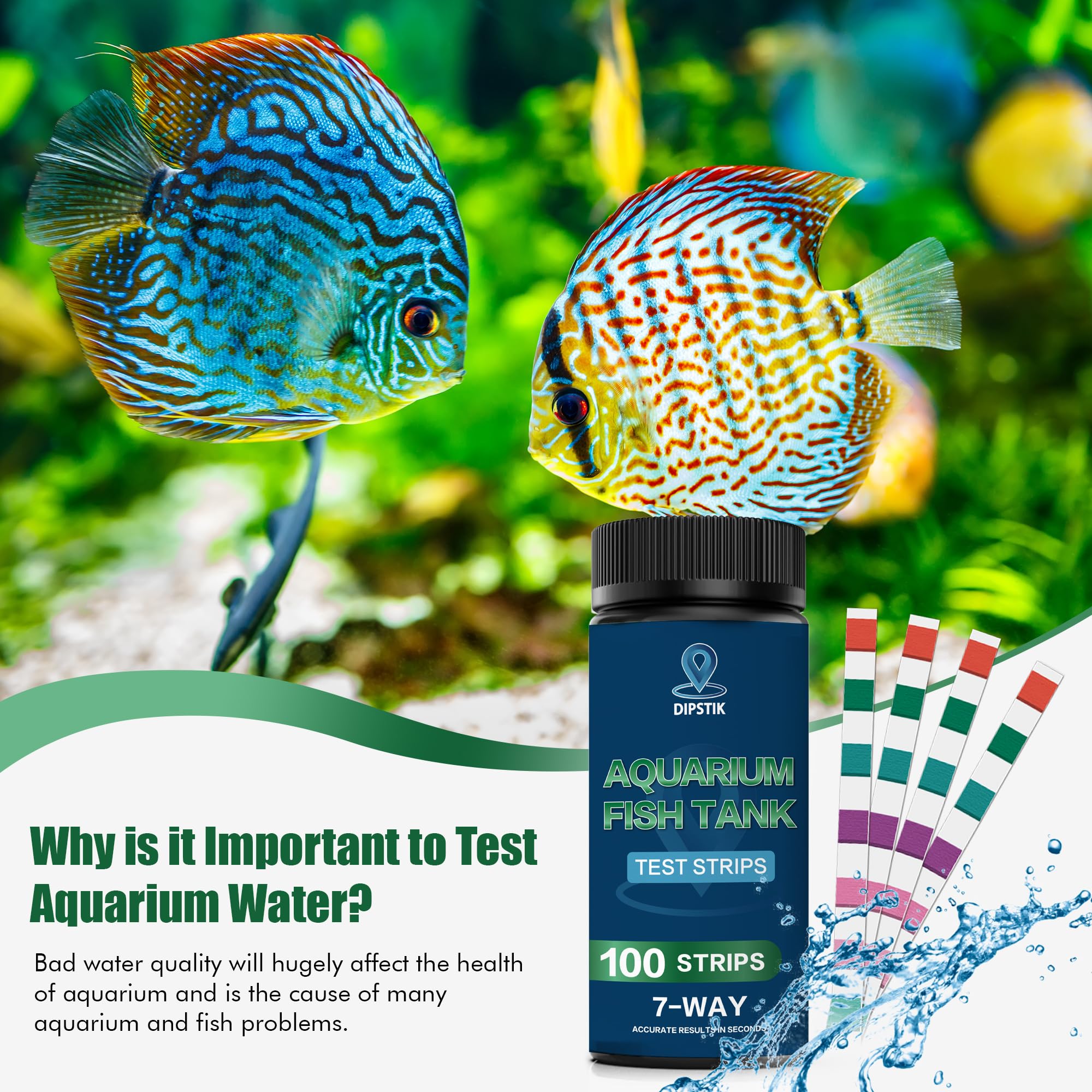 7-Way Fish Tank Test Strips:Water test strips are made of high-quality fiber paper and no color bleeding pads,can easily provide instant and reliable results,Use at least twice per week or as needed to monitor your water quality