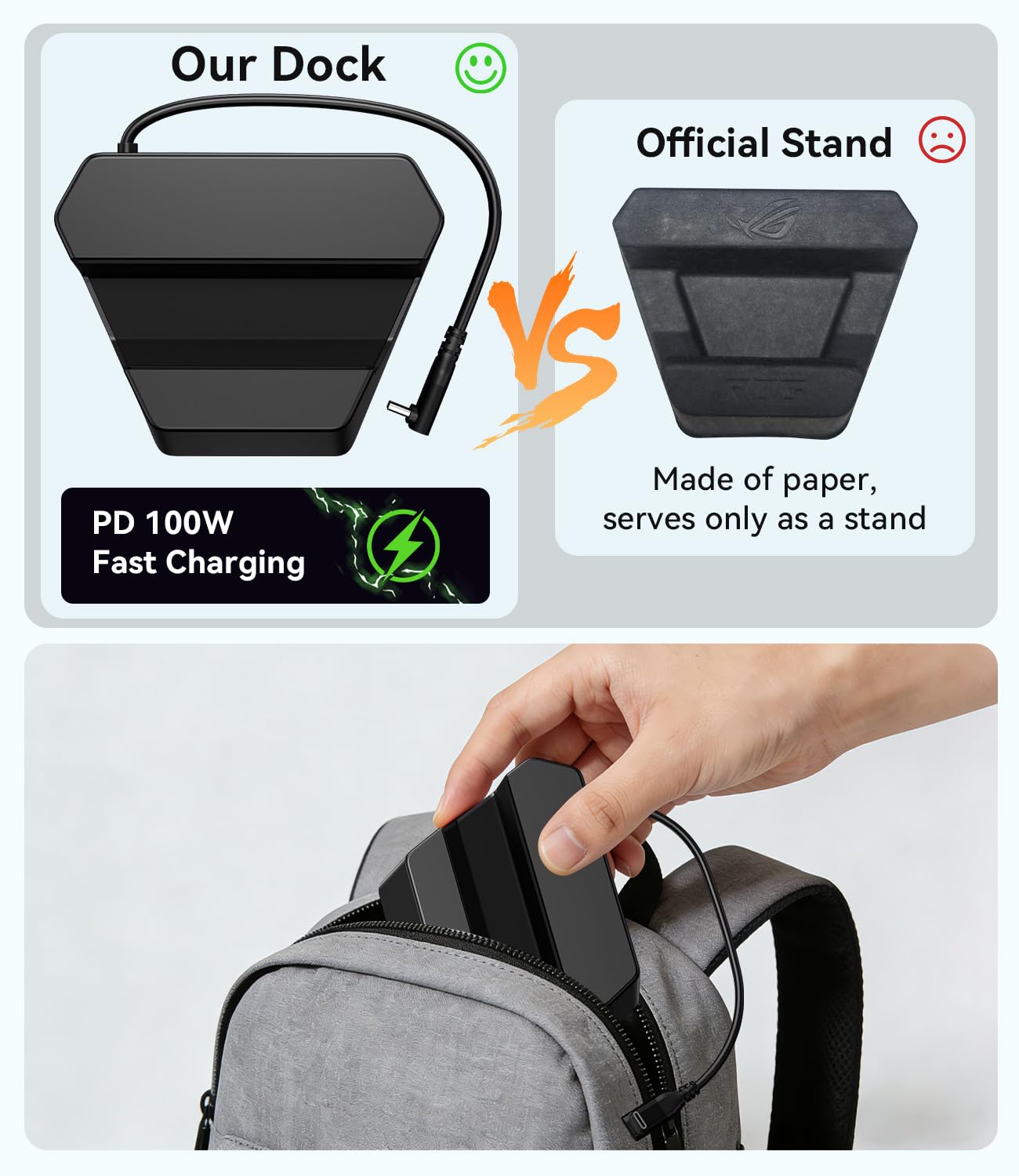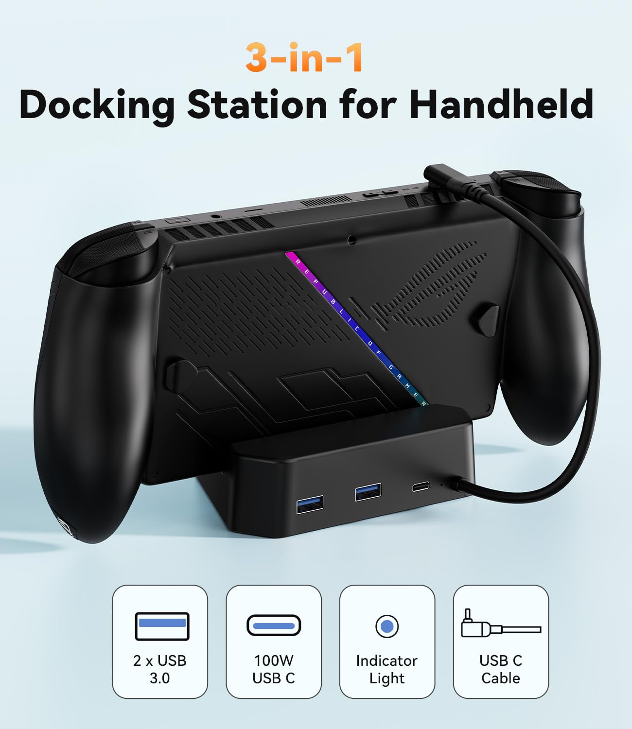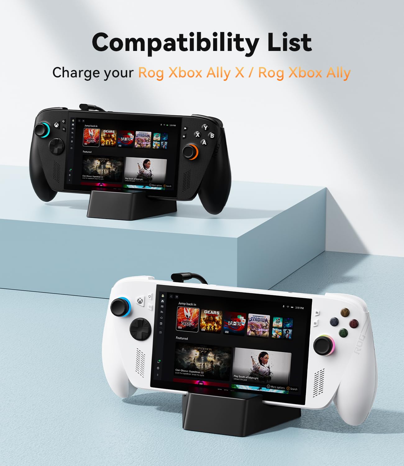 Compatibility: The SiWiQU dock only works with ROG Xbox Ally X / ROG Xbox Ally. The ROG Xbox Ally docking station is not work with ROG Ally / ROG Ally X. (NOTE: only docking station included, no cable or charger. Please use official ROG original power adapter.)