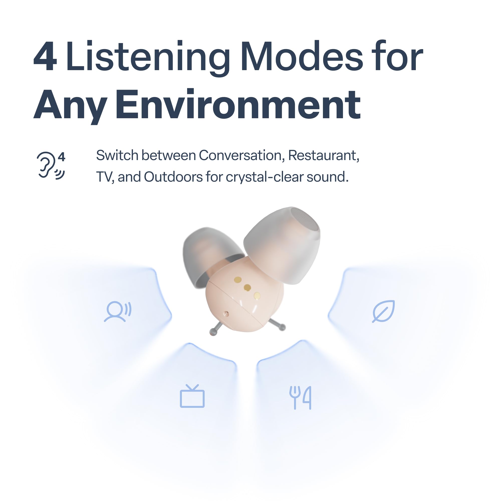 4 versatile Hearing Modes: Easily switch between 4 versatile hearing modes and start hearing your loved ones more clearly. Enjoy both the TV and conversations simultaneously for the ultimate convenience at your fingertips.