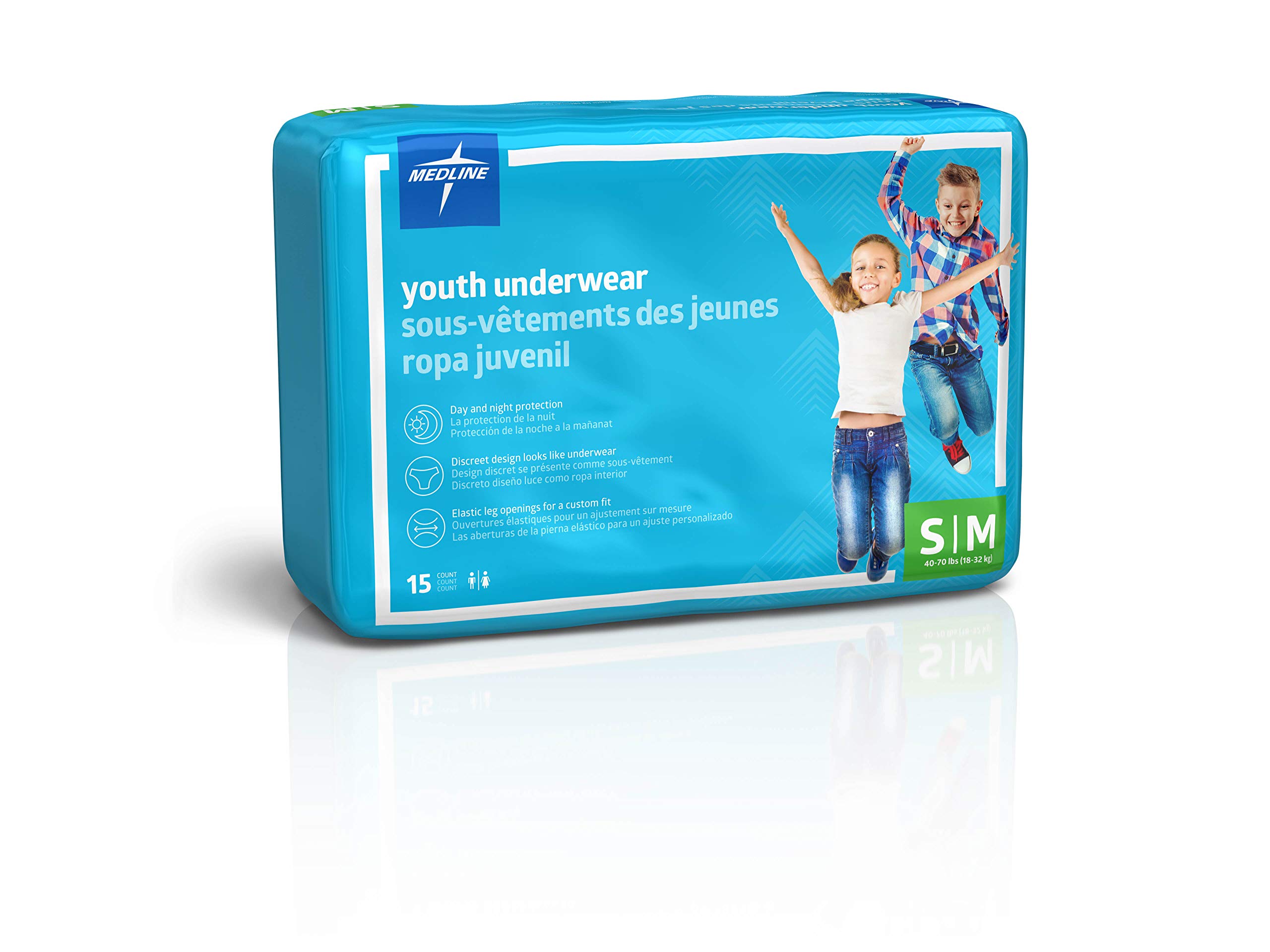 Experience the ideal blend of comfort, protection, and discretion with Medline Youth Disposable Protective Underwear. Specifically designed to cater to the unique needs of young individuals weighing between 40 to 70 lbs, these pull-up briefs mimic the look and feel of regular cloth underwear, ensuring your child's confidence remains intact. The discreet ultra-absorbent layer, coupled with a moisture-resistant barrier, provides superior wetness protection, keeping your child dry and comfortable throughout the day and night. The soft elastic waistband ensures a snug yet comfortable fit, further enhancing the user experience. These undergarments are not only gentle on the skin but also effectively control odor, maintaining freshness for extended periods. Easy to wear and remove, they offer a practical solution for youth incontinence, promoting independence and self-confidence in your child. With a pack size of 60, these undergarments ensure you have a reliable supply on hand. Choose Medline Disposable Protective Youth Underwear for a comfortable, discreet, and reliable solution to youth incontinence.