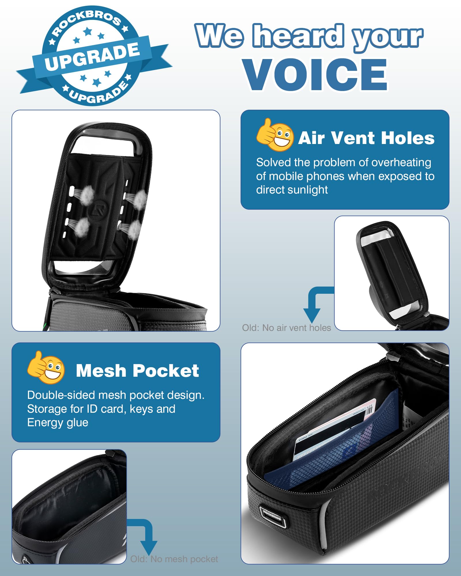 HIGH SENSITIVE TOUCH SCREEN: The bike phone bag has a high sensitive TPU film window which can helps you use cellphone easily while riding, great way to see your activity while using maps on a ride. (Note: Touch ID NOT worked through the screen cover)