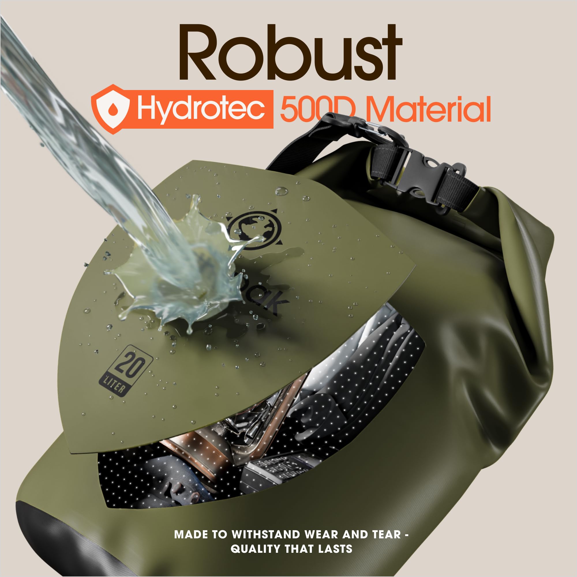 Keep Your Items Dry and Protected: Protect Your Valuables with our 5L, 10L, 20L, 30L, 40L, or 55L Dry Bags! Just toss your gear inside your water bag, roll it down, and you’re good to go on your next adventure.