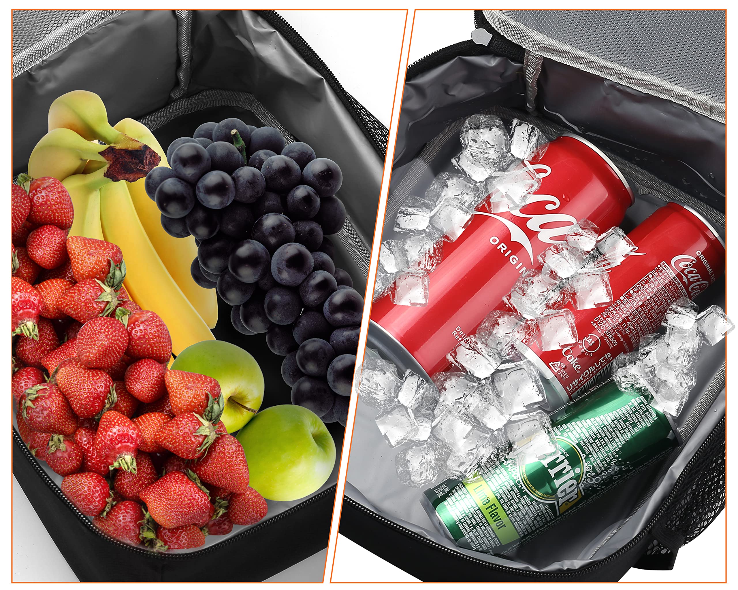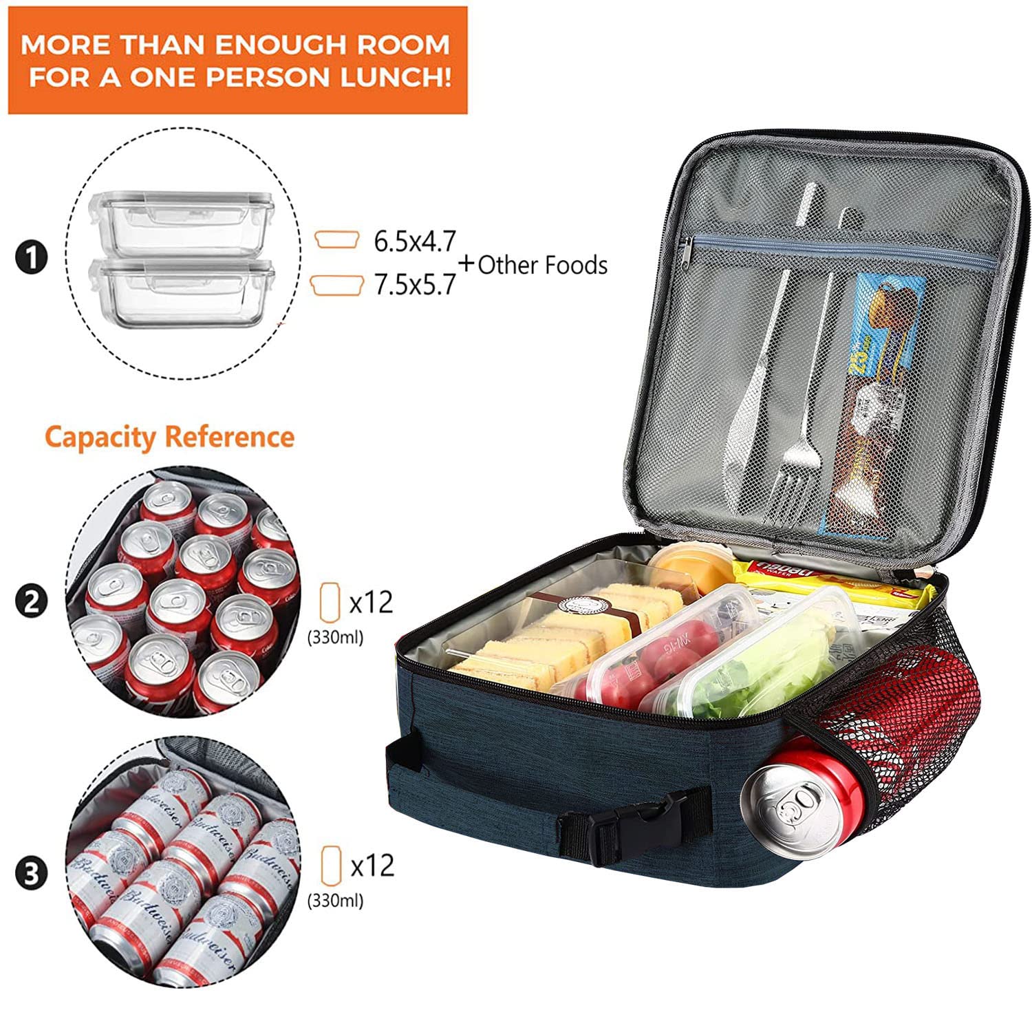 【Suitable Size】: The exact size (8.7x 4.5x 10.2in / 22 x 11x 26cm). Spacious enough to fit 12 cans of soda, or one person’s lunch and more.With enough space to carry lunch for more than one person, this lunch bag is perfect for outdoor