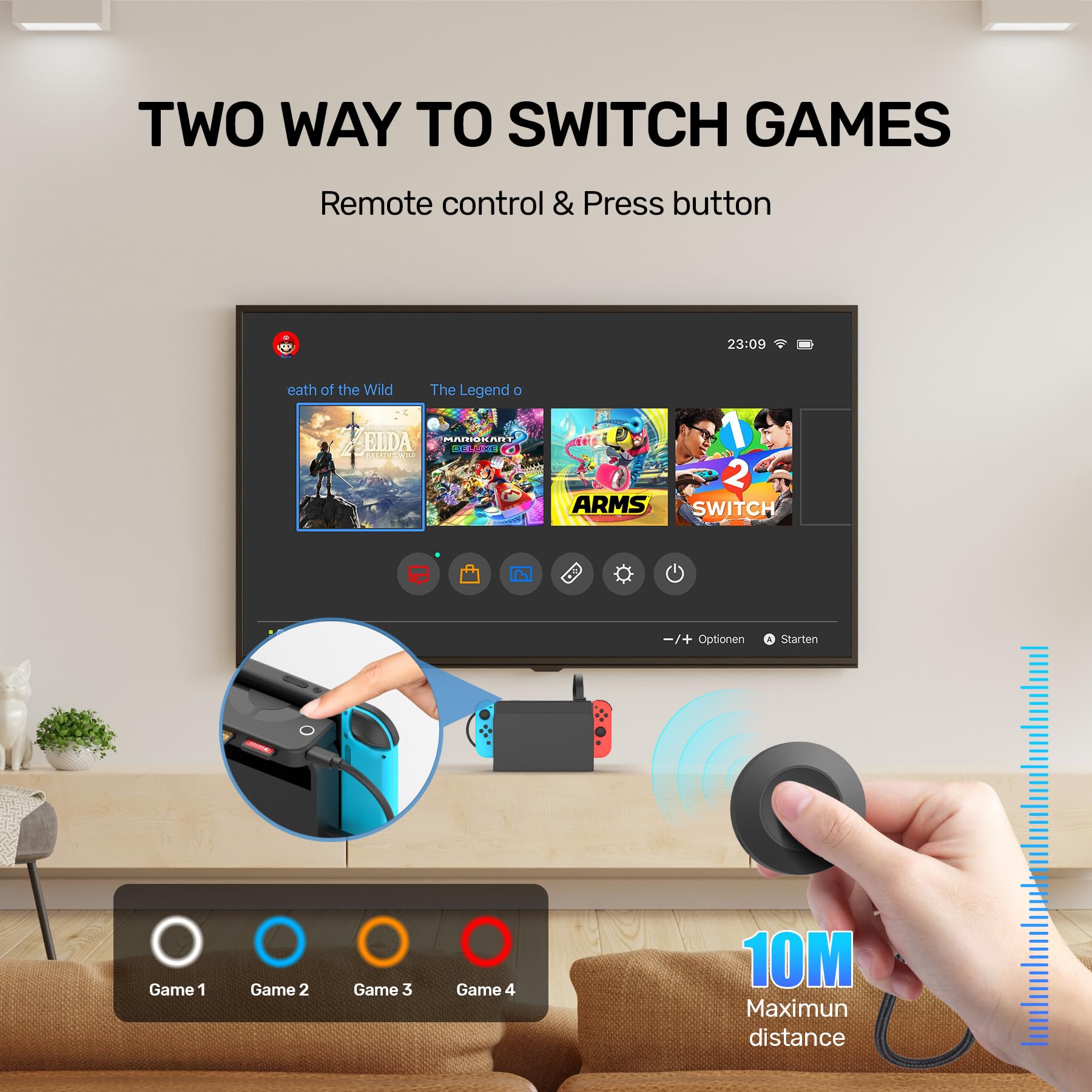 【Press the Butto to Switch】Switching games is made even easier with the LED button. Simply press the button and the LED indicator will change color to indicate a successful game switch. (Game 1 is white, Game 2 is blue, Game 3 is yellow, Game 4 is red)