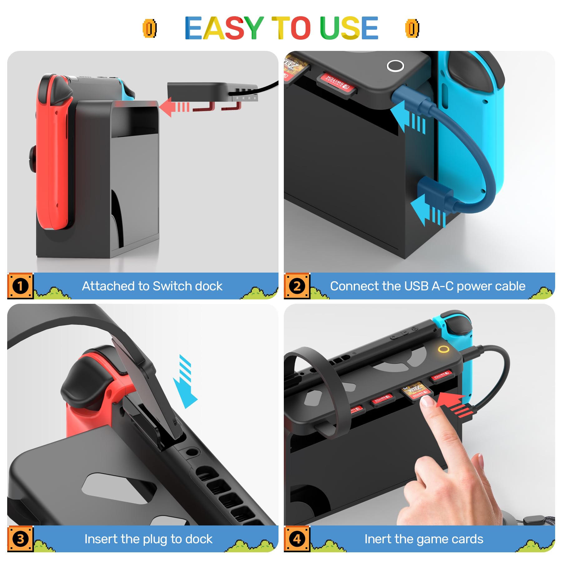 【Plug & Play】Simple connection, Spring-loaded locking slots, insert the game card by “pressing”. Reject tedious installation and setup steps, easy to use. Making it easier for you to replace game cards and keep your game area tidy.