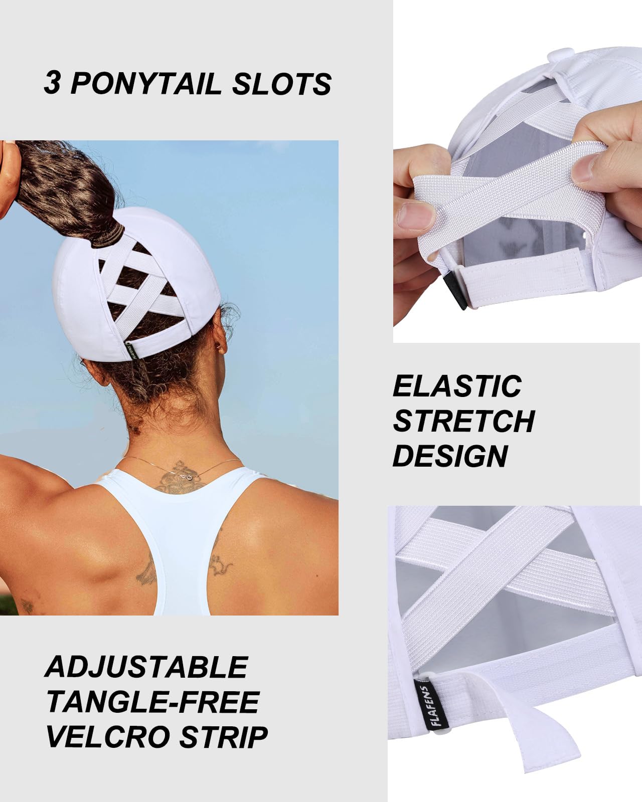 High Ponytail Slot: This women's baseball caps has three holes and an elastic band, allowing you to easily place messy hair buns at three different heights, suitable for thick hair