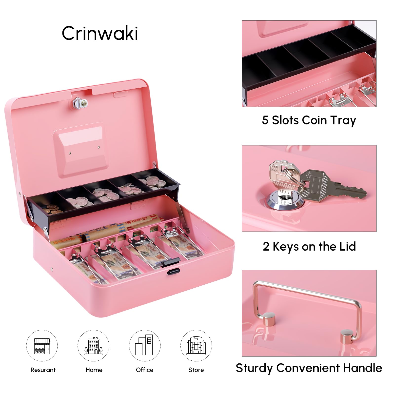 WIDE APPLICATION: Our metal cash boxes are widely used for all kinds of occasion, such as home, small business, events, yard sale, garage sale, stores, shops, farmers markets, fairs, fundraiser etc.