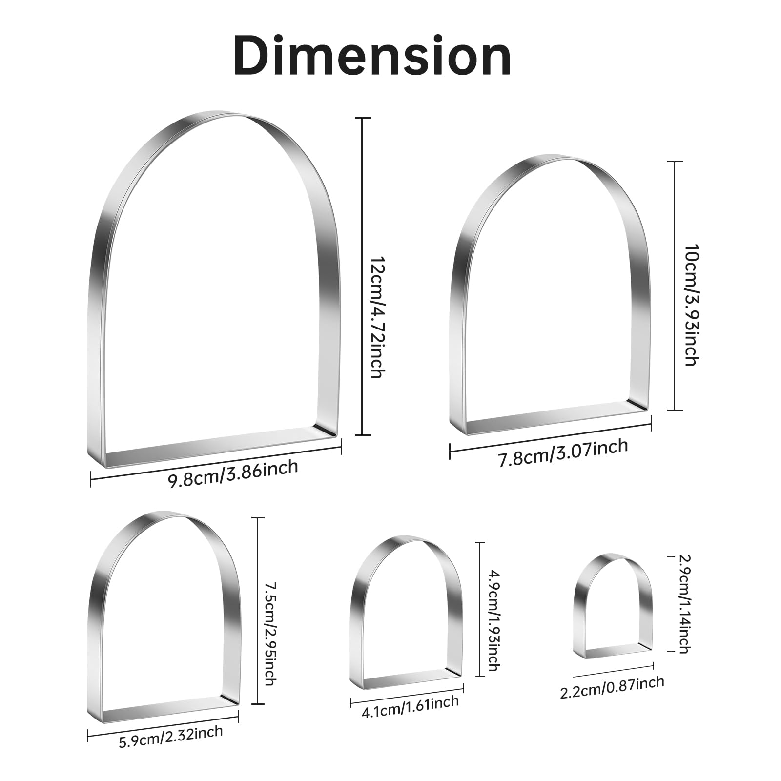 Includes: 5 pieces Arch Molds with different size: ( 3.15, 2.75, 2.36,1.97,1.57 )inches.