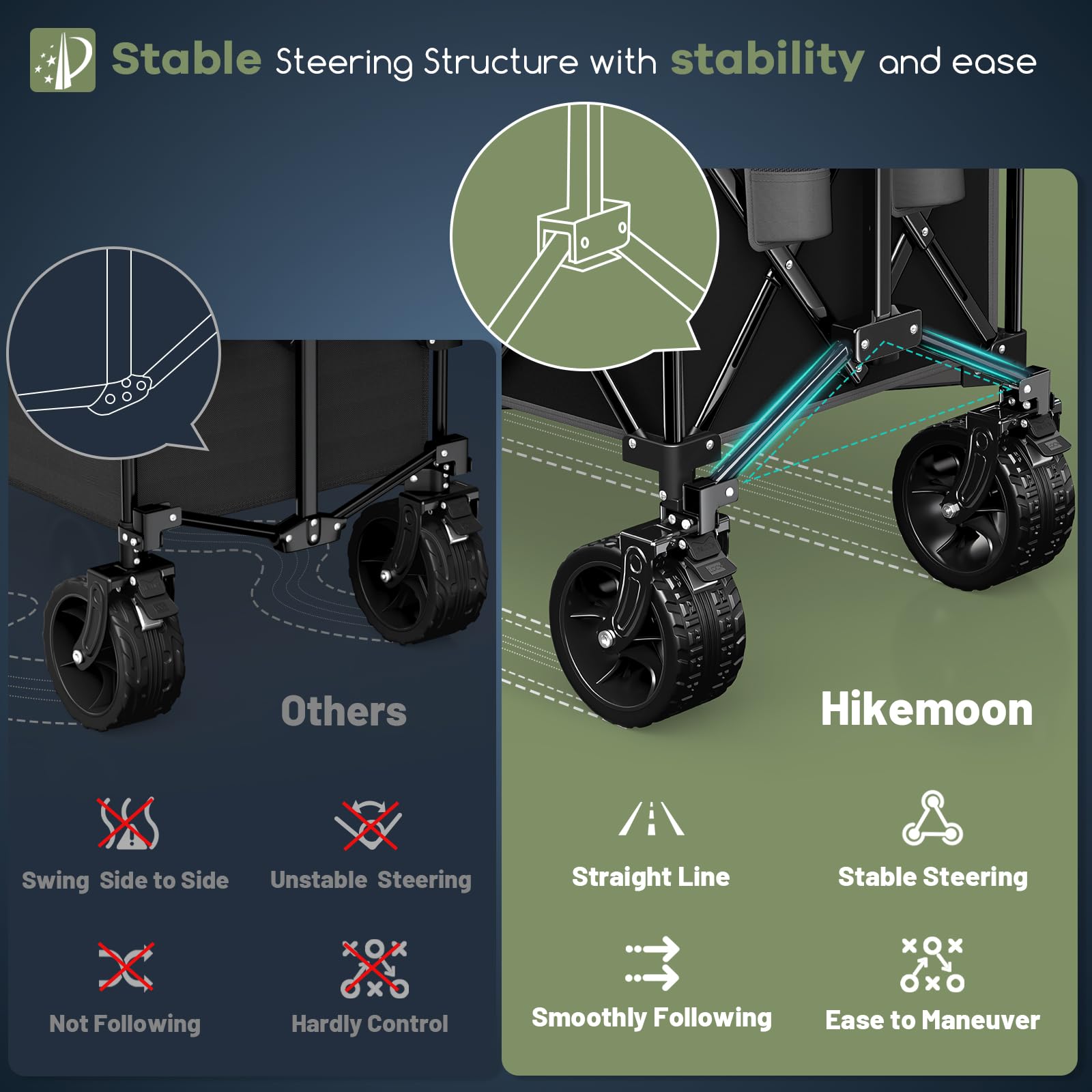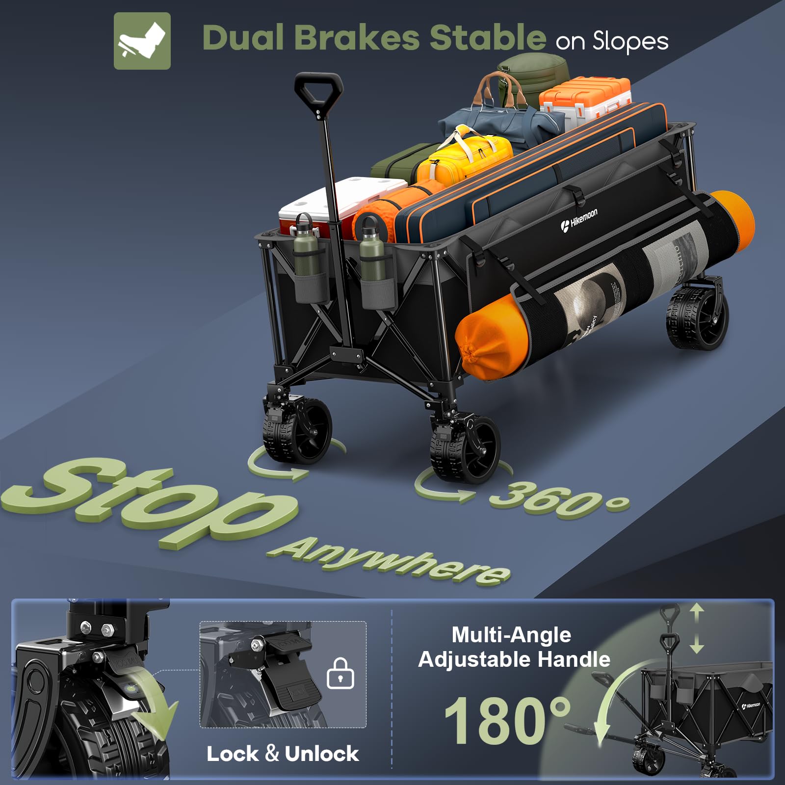 ใ๐๐๐ยฐ ๐๐ข๐ฅ๐๐ง๐ญ ๐๐ข๐ ๐๐ฅ๐ฅ-๐๐๐ซ๐ซ๐๐ข๐ง ๐๐ก๐๐๐ฅ๐ฌ ๐๐ฉ๐ ๐ซ๐๐๐๐ ๐๐ญ๐ข๐ฅ๐ข๐ญ๐ฒ ๐๐๐ ๐จ๐ง - ๐๐ฆ๐จ๐จ๐ญ๐ก๐๐ซ ๐๐จ๐ฅ๐ฅ๐ข๐ง๐ ใ: The collapsible wagon has large all-terrain wheels (7" x 4") and 360ยฐ swivel front wheels. Dual front brakes prevent the wagon from sliding. Built-in double bearings ensure smoother rolling over mud, grass and gravel. It is also a beach wagon with big wheels for sand. It is quiet, shock-absorbent and wear-resistant for beach, shopping, lounge, grocery, garden, picnics, camping, sports, fishing and concerts.
