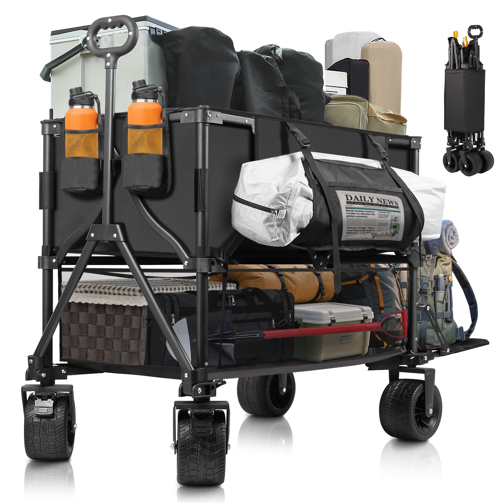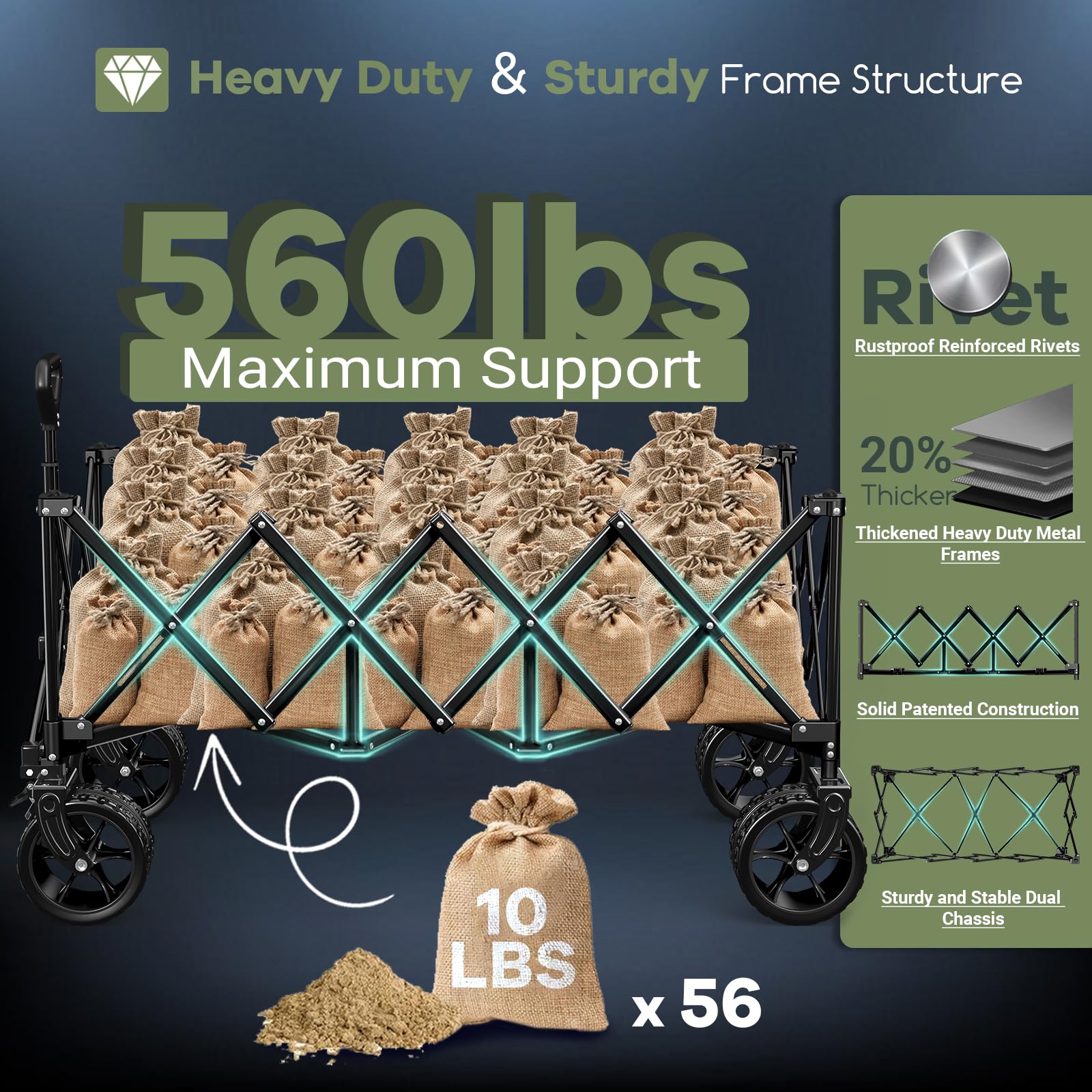 ใ๐๐๐๐๐ ๐๐๐ซ๐ ๐๐ซ ๐๐๐ข๐ ๐ก๐ญ ๐๐๐ฉ๐๐๐ข๐ญ๐ฒ ๐๐ญ๐ฎ๐ซ๐๐ฒ ๐๐๐๐ฏ๐ฒ ๐๐ฎ๐ญ๐ฒ ๐๐๐ญ๐๐ฅ ๐ ๐ซ๐๐ฆ๐ ๐ ๐จ๐ฅ๐๐ข๐ง๐ ๐๐๐ซ๐ญใ: The reinforced heavy-duty metal frames give this premium collapsible wagon a static weight capacity of up to 560 LB and a dynamic weight capacity of up to 440 LB, making it more robust and resistant to buckling or deformation. The foldable utility cart can easily transport camping gear, garden tools, beach chairs, and groceries. It features 600D Oxford fabric that is tear-resistant, long-lasting, waterproof, and easy to clean.