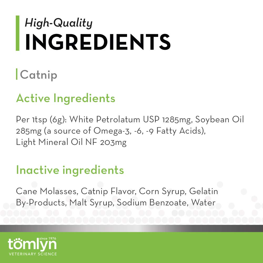 Lubricates ingested hair, allowing it to move through the digestive tract and pass in the cat’s stool