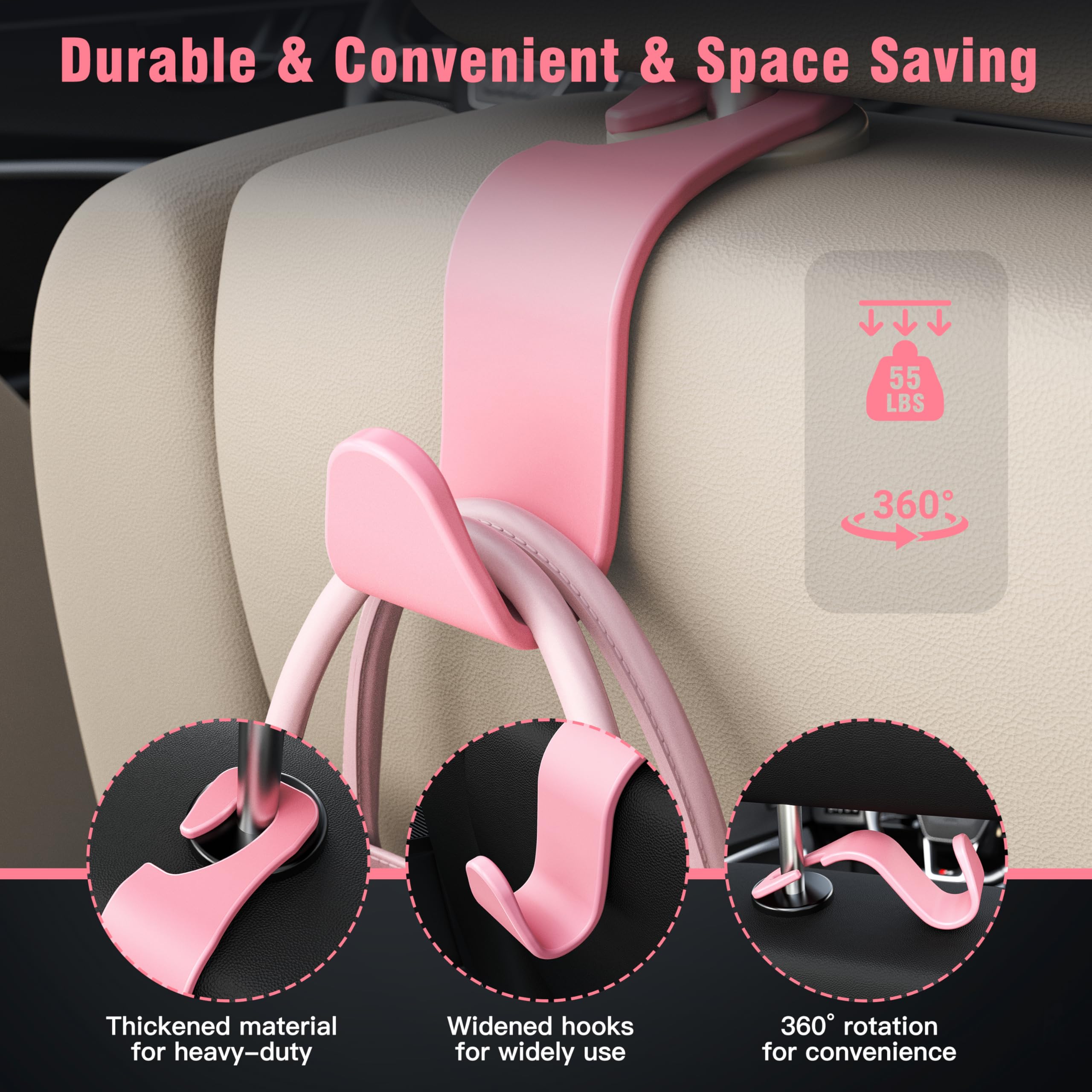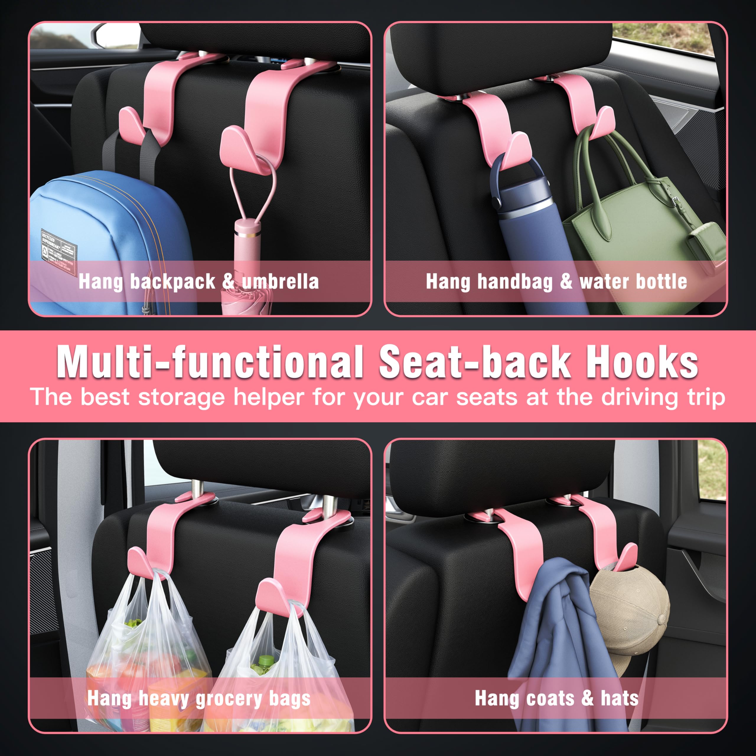 4.Easy to install: easy remove, easy installation. The car headrest hook with simple design, do not need to take off the headrest, no tools required.