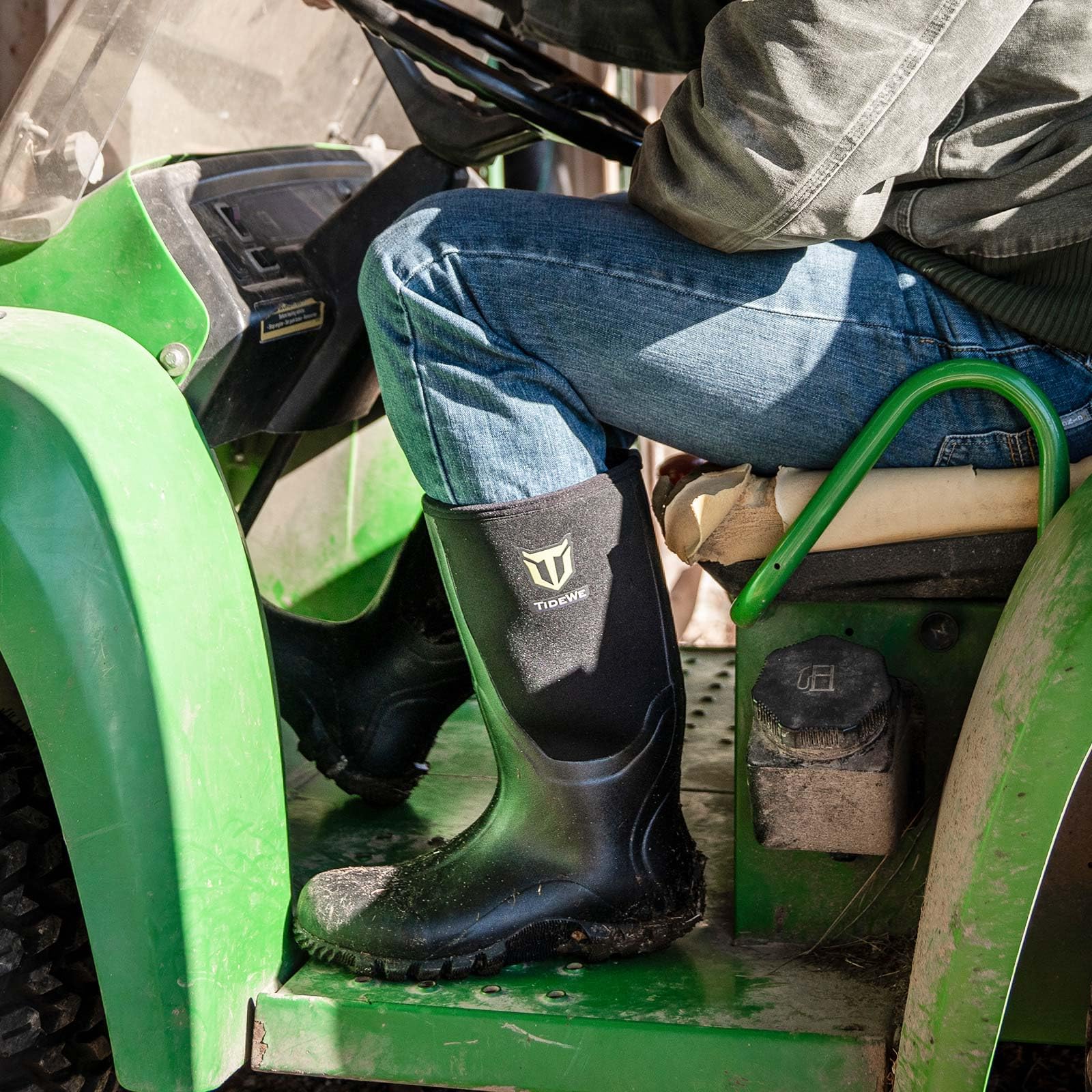 【Waterproof & Anti-Slip】TideWe’s rain boots feature (6mm) neoprene uppers and a natural rubber material creating an extra tough, 100% waterproof design. The deep tread integrated into the rubber soles, provide non-slip traction over the roughest terrain.