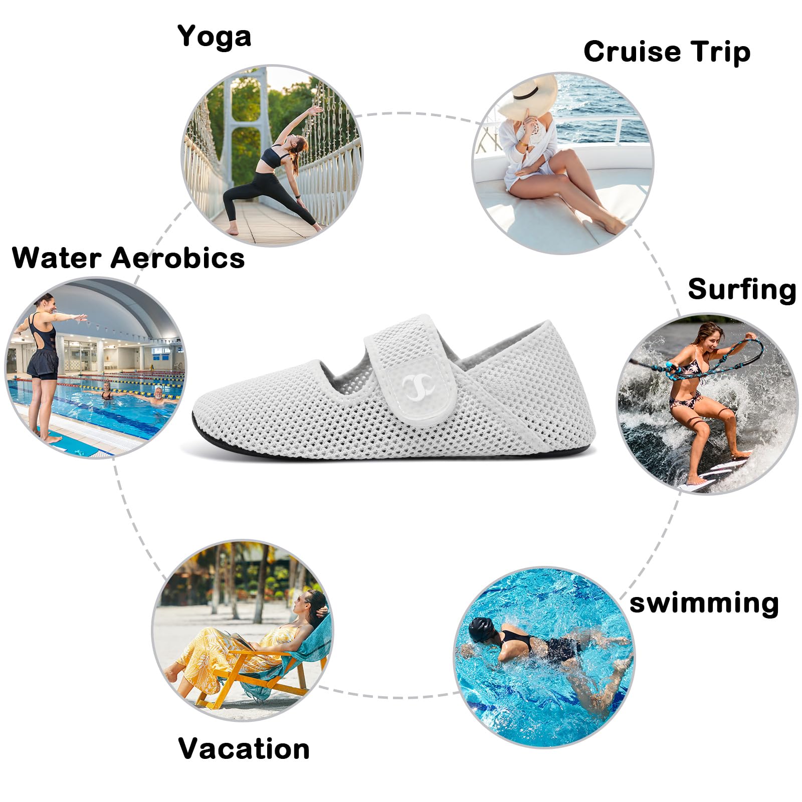 〓 Comfy Quick-dry Water Socks : High stretchy upper with honeycomb mesh fabric or hollow-out knit fabric gives excellent cross ventilation and quick drying ability. Adjustable straps make sure of a natural fit for you, giving maximum comfort for any kind of water activities