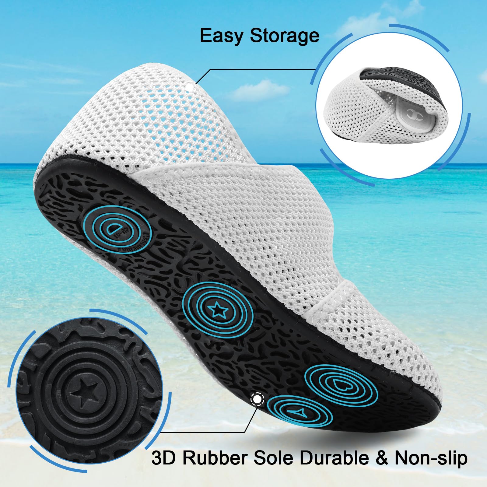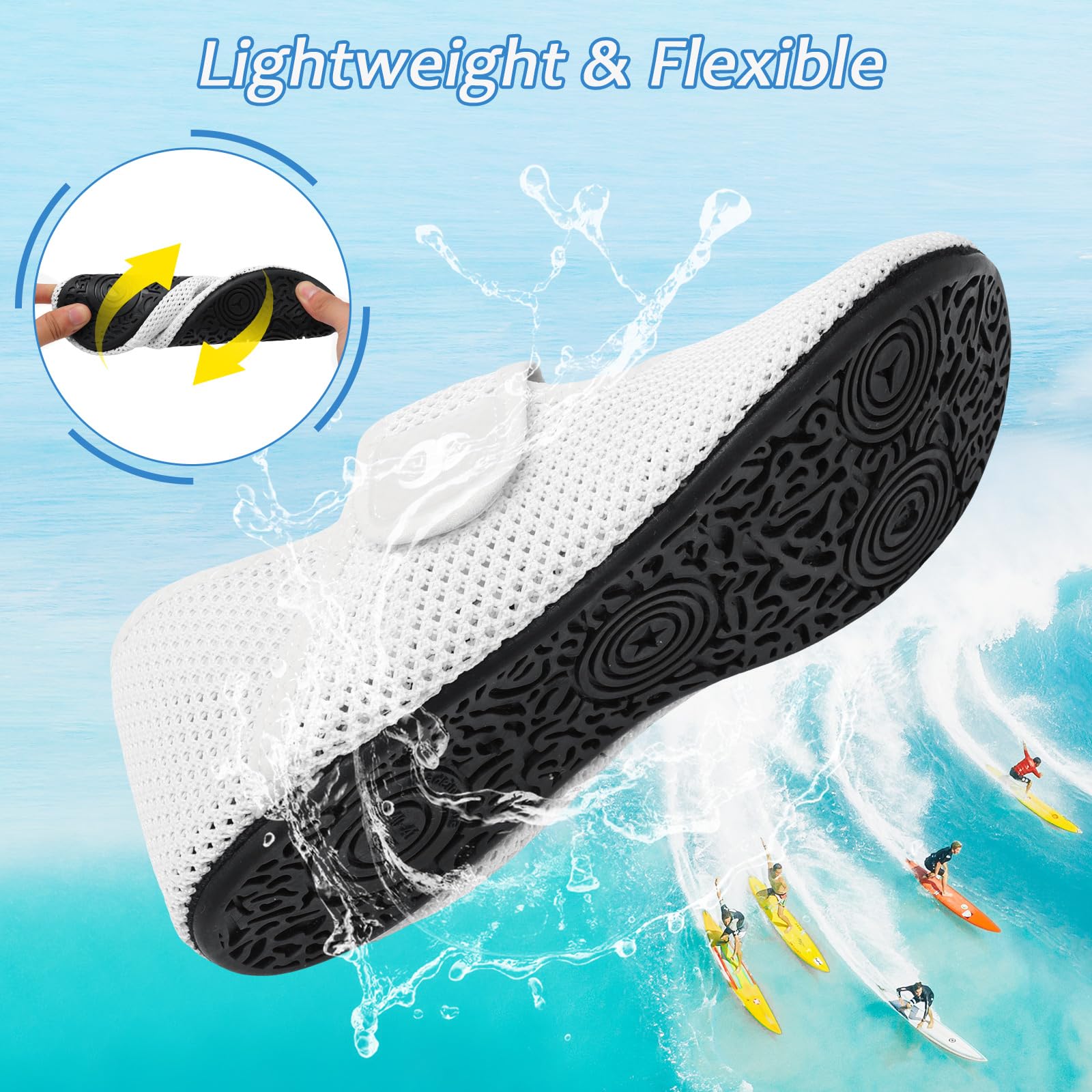 〓 Soft Flexible Beach Shoes : The soft flexible rubber sole with 3D non-slip treads provides excellent grip even in slippery conditions. The zero-drop non-elevated sole offers better ground feedback, enhancing your enjoyment for walking over rocks, sand, gravel trails, etc
