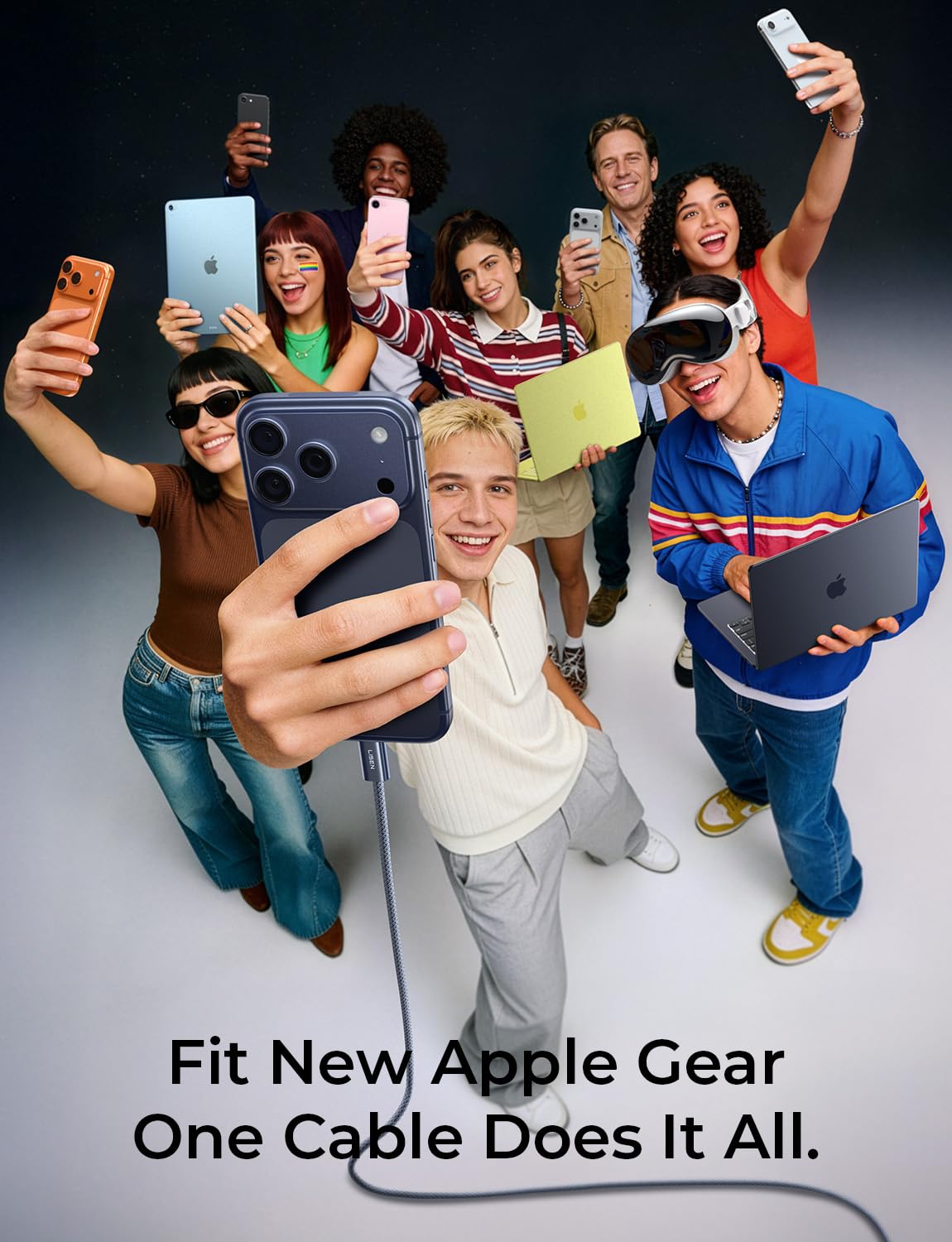 [240W Ultra Fast Charging | Smart Protocol Matching] This usbc to usbc cable upports PD3.1 EPR/QC4.0 fast charging up to 240W Max, working seamlessly with USB-C Power Delivery adapters (e.g.60W/100W/240W). It automatically matches your device’s handshake protocol to deliver the maximum safe power it can handle—no guesswork, just the fastest possible charge for each gear. It's 2.4X faster than 100W fast charging usb-c cables: Up to 85% charged in 30 mins for iPhone 17 Pro Max, Up to 65% charged in 30 mins for iPad Pro, and up to 80% charged in 30 mins for MacBook Pro M5. This fast charging cord type c balances speed and protection perfectly, giving you both fast and secure charging