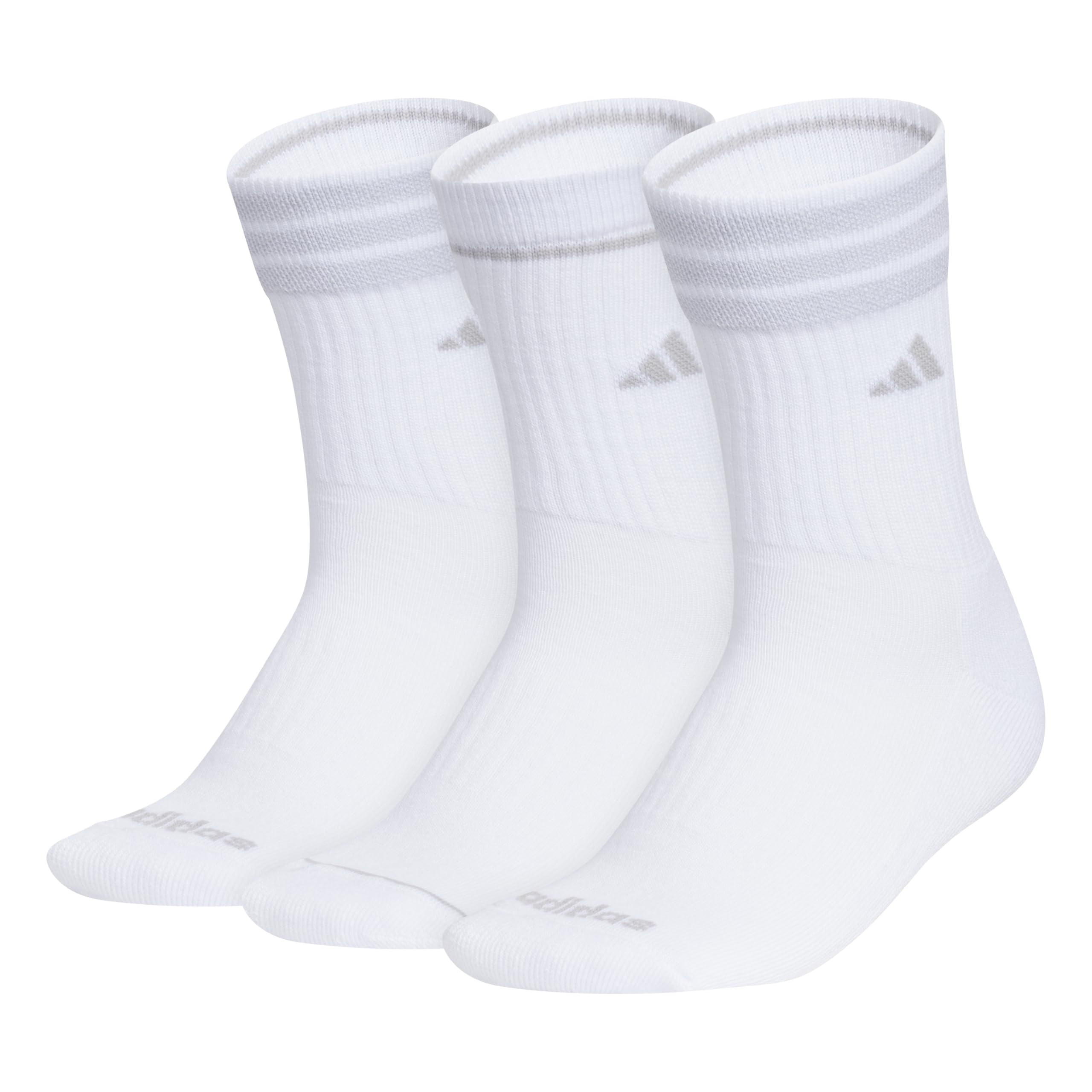 Description These women's cushioned quarter-high socks go long on comfort. Thoughtful details like extra arch support and moisture-wicking yarns help you power through your personal records. Simple adidas logos root your style in sport. Includes three pairs, so you have options.