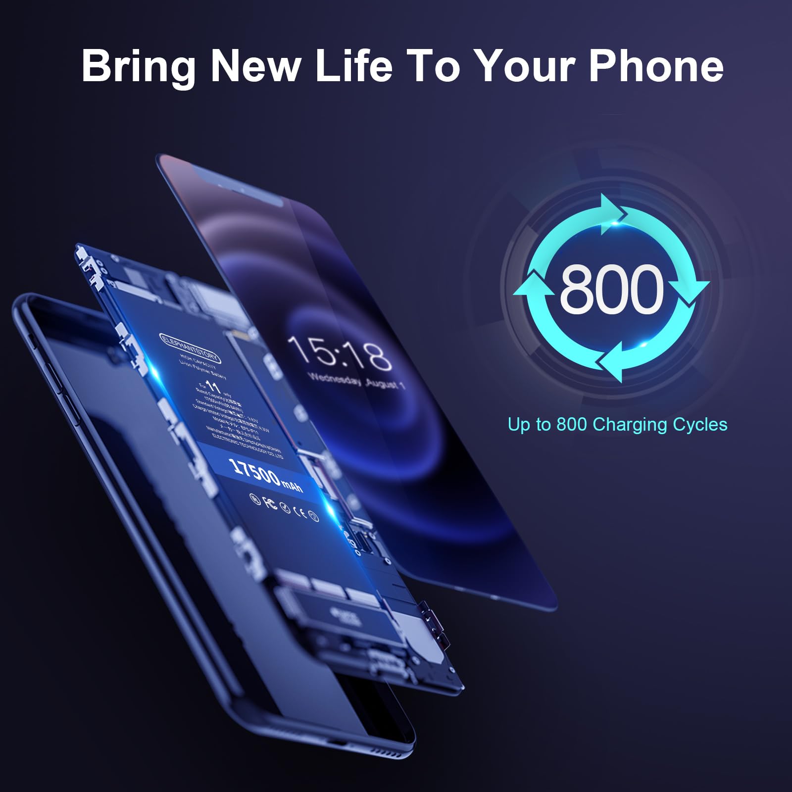【HIGH CAPACITY 】 Bring your Phone11 battery life back to glory and save money. 17500mAh high capacity which is much higher than original battery. last up to 800 charging cycles to provide longer battery life.