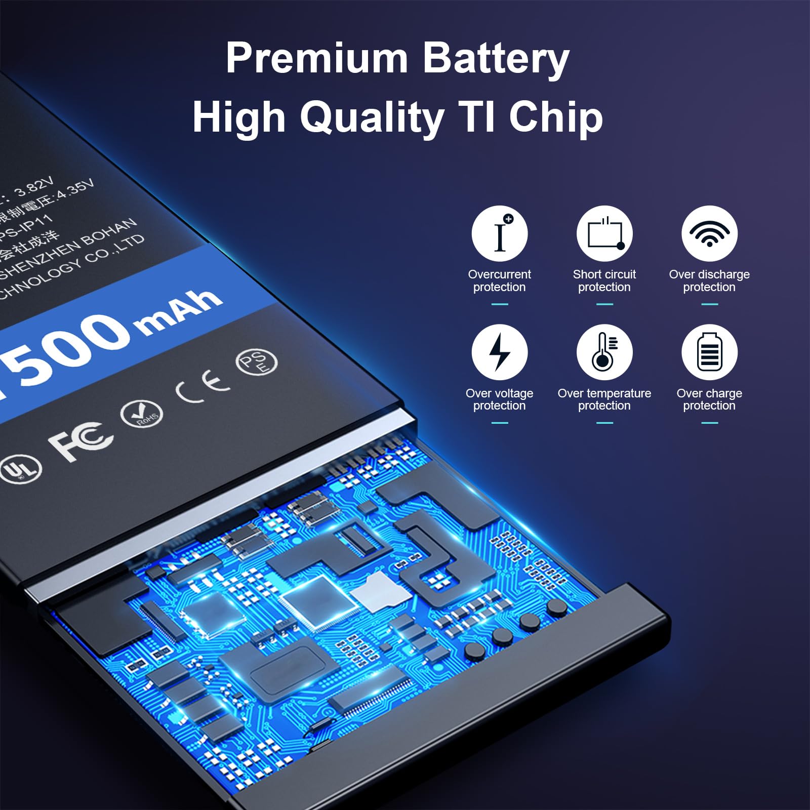 【HIGH QUALITY 】Our upgraded 11 battery uses Grade A rated battery cells with UL, FCC, CE, ROHS certification. Build-in with IC chip to prevent the battery from over-charging, over-discharging short-circuiting and over-heating, which can protect both users and devices.