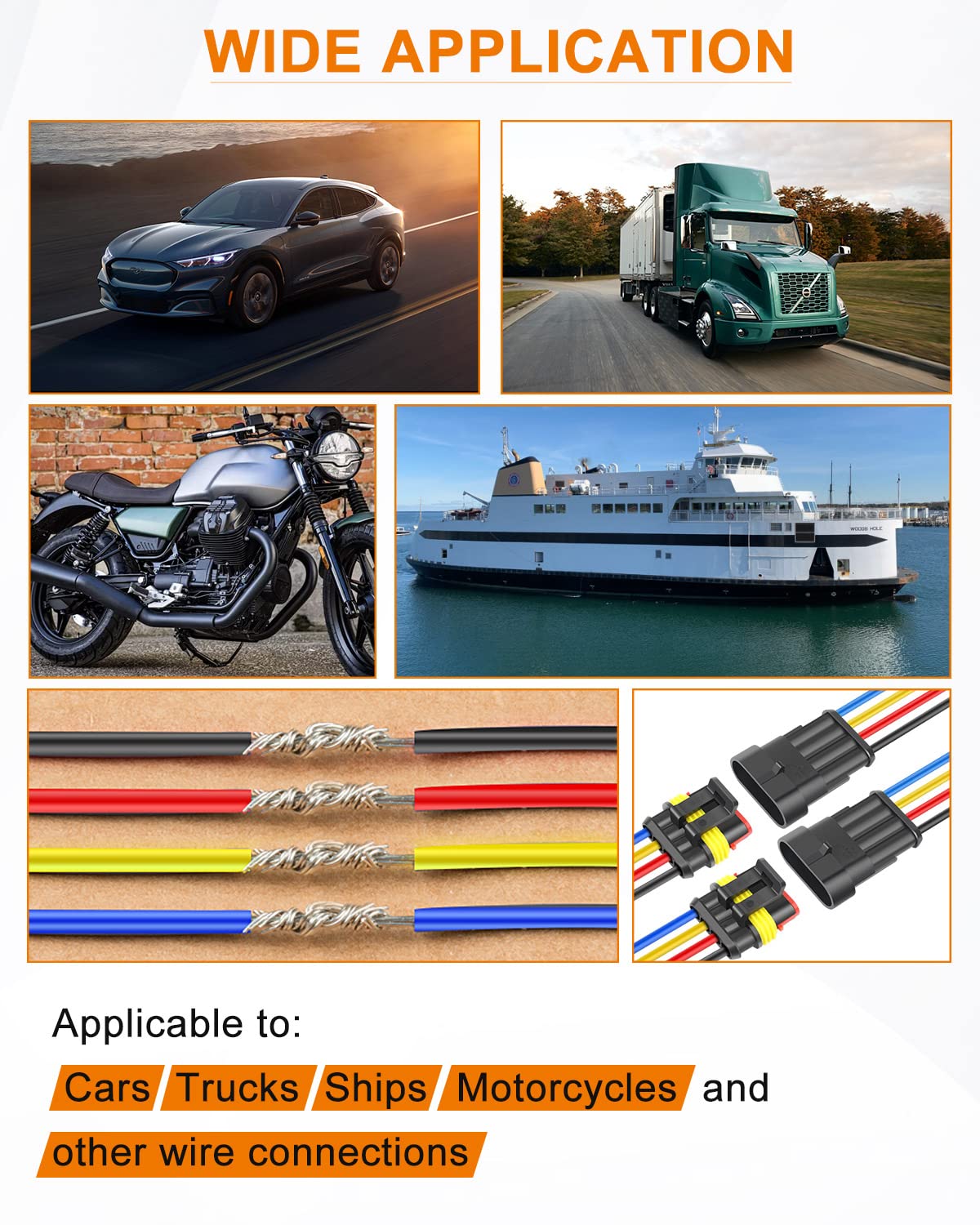 Wide Application: The automotive wire connectors are 4 pin waterproof connectors, suitable for motorcycles, scooters, cars, trucks, quad bikes, trikes, caravans, marine, jet skis, boats, and other wire connections