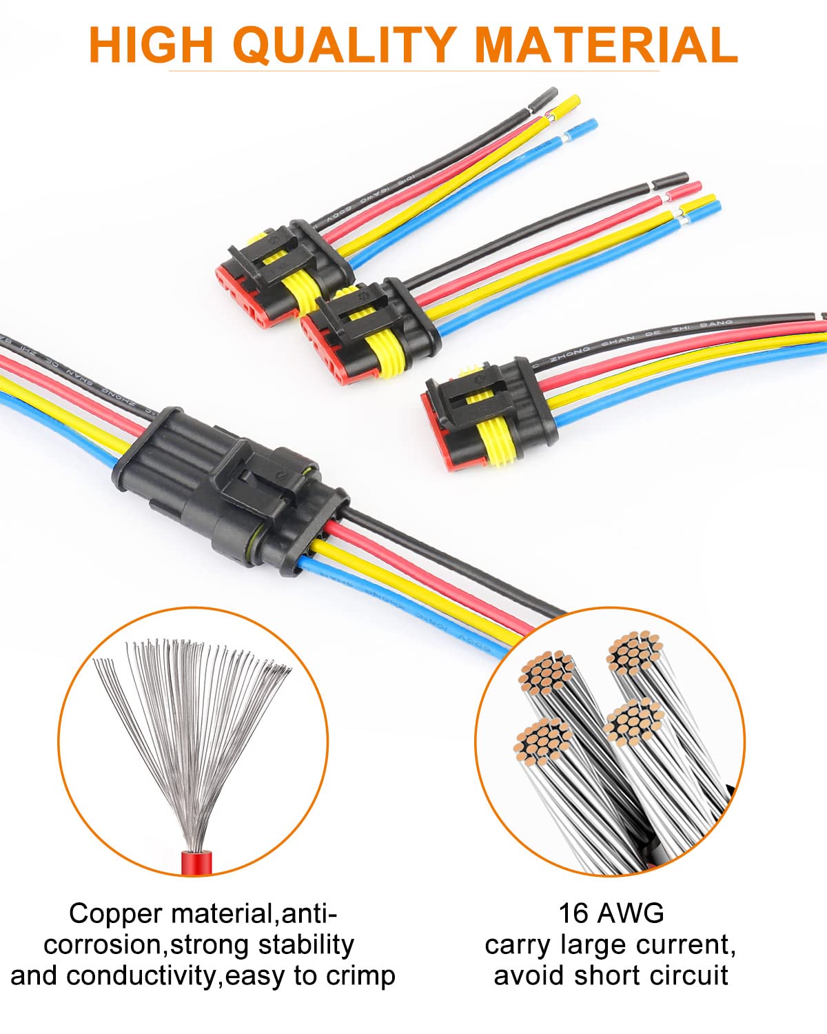 Plug and Play: Our 4 wire plug automotive electrical connectors are easy to install under soldering and crimping. The 4 wire connectors quickly connect Just 30 seconds of installation, after the merger-crimped tight enough