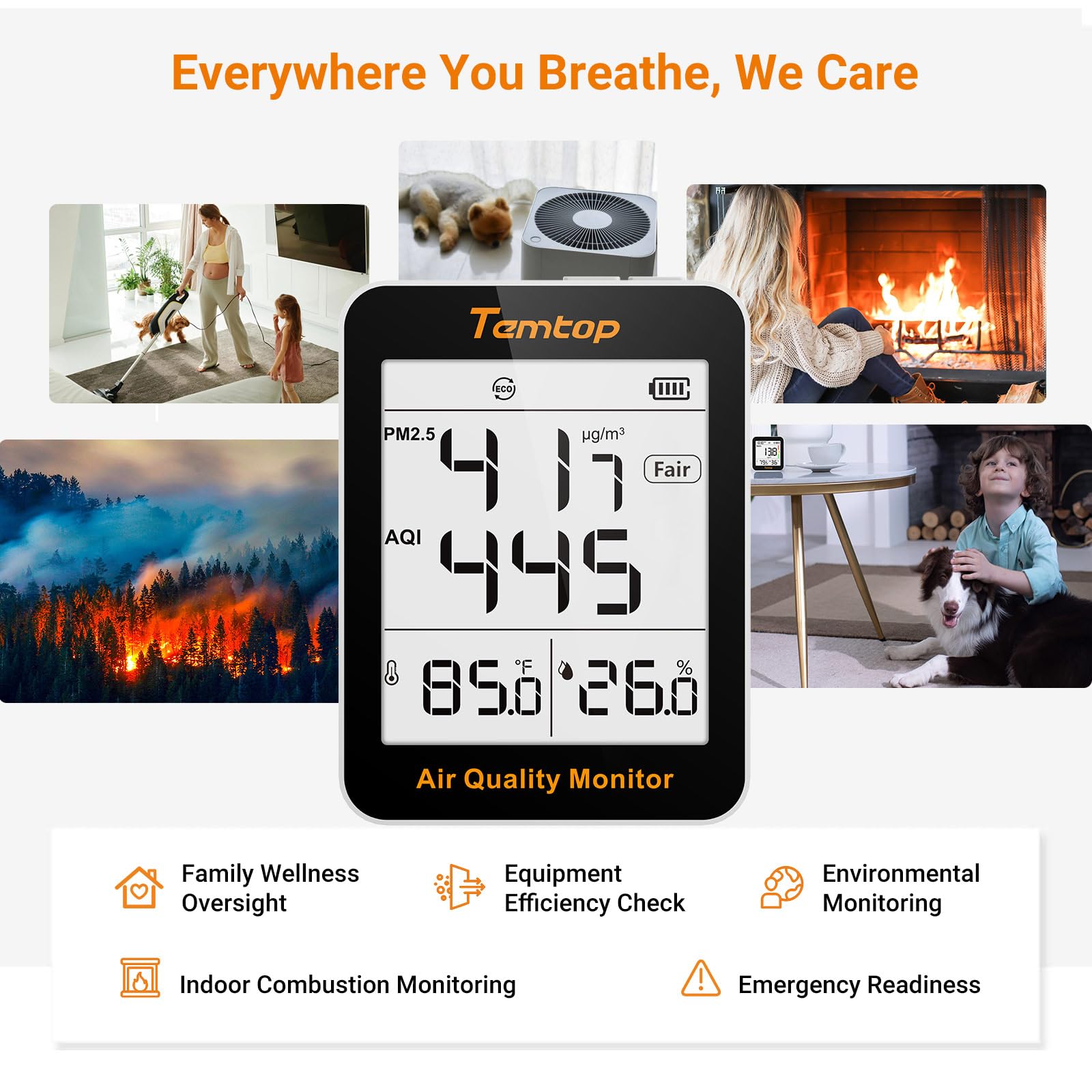 Ensure Fresh Air - The WHO recognizes PM2.5 as a category 1 carcinogen, posing potential health hazards. With the Temtop PM2.5 monitor S1, you can detect air quality in real-time, ensuring every breath you take is fresh and safe.