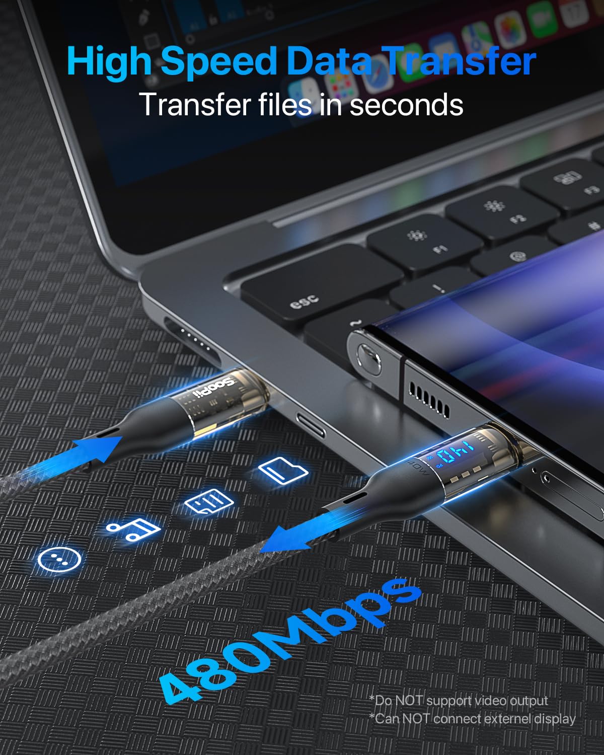 Outstanding Charging Output & Data Transfer: This SooPii USB C to USB C cable supports 140W(max 28V 5A) fast charging and 480Mbps data transmission speed. It also supports Super Fast Charging for Galaxy S23/S22 while using an original charger. All for creating a satisfying charging experience that beyond expectations to you. (Note: It does not support video output.)