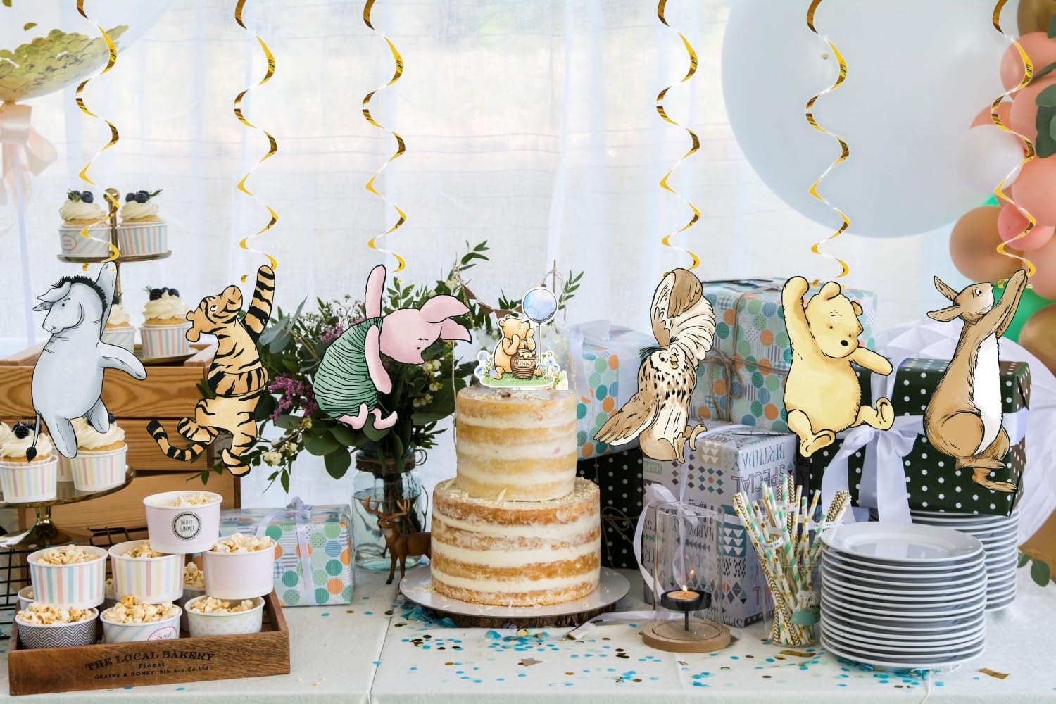 Premium Quality: Use the golden spiral, shiny and more fit for the party style. Pooh cutouts are made from sturdy cardstock, double-side printing, vibrant color