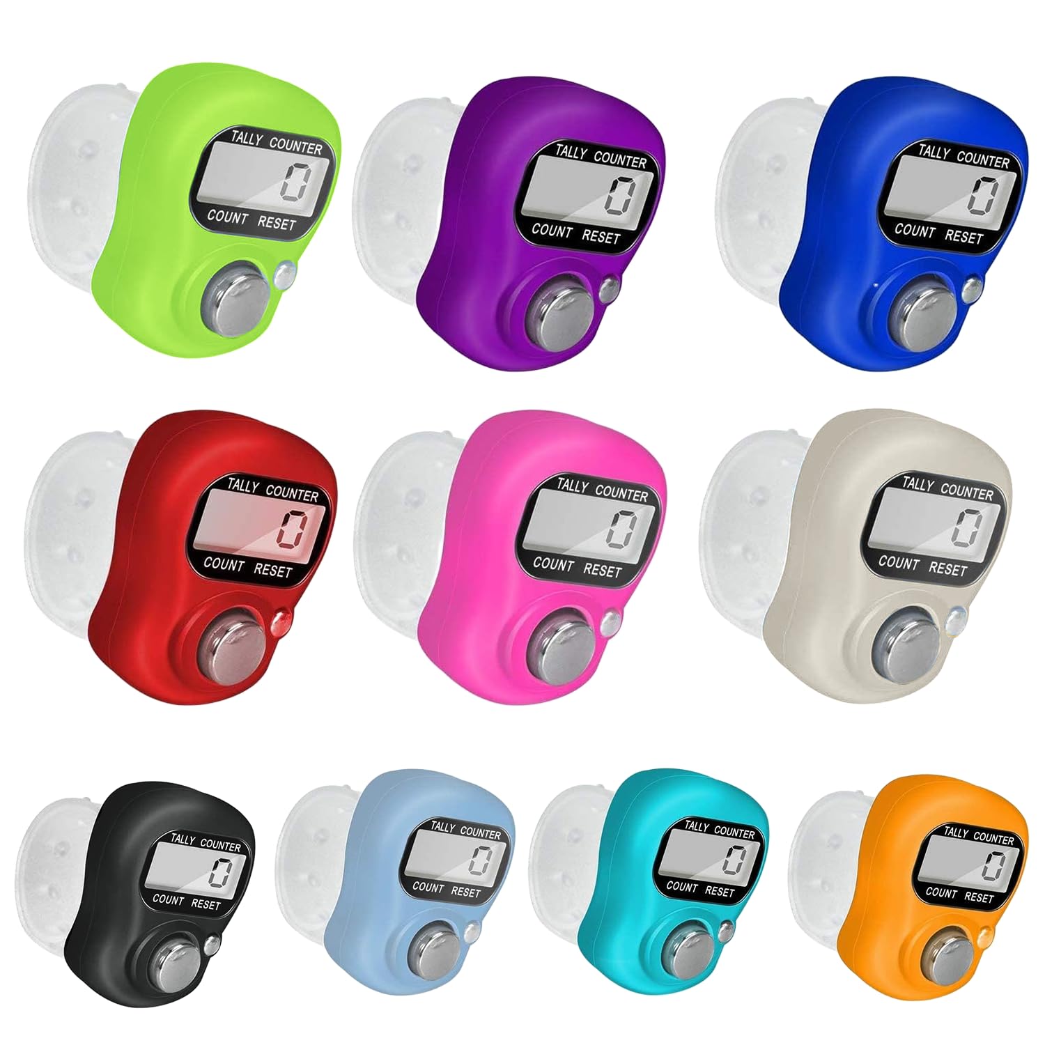 Product description: ▶ Perfect for knitting, sporting, crocheting. ▶ Rugged casing, bold display. ▶ Large function button, light weight. ▶ Dimensions: 3.5cm x 3cm x 1.5cm/1.38" x 1.18" x 0.6" (Approx.) ▶ Case Material: ABS ▶ Battery Size: AG10 ▶ Color: Random Color ▶ Package Includes: 10 x Digital Finger Counter (The Battery is included.)