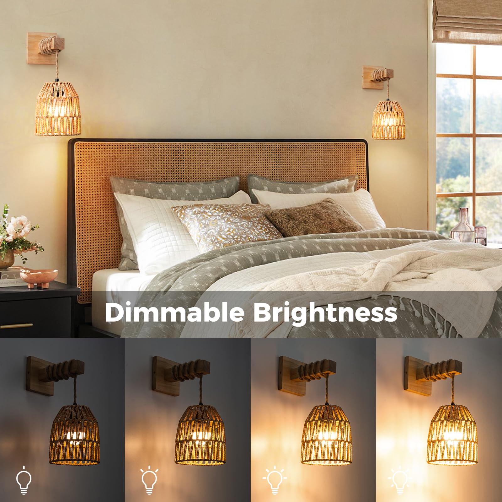 Rattan Wall Sconce - Wall Sconces Set of Two Battery Operated handmade rattan lanterns boho wall sconces are ideal bedroom wall decor. These wall sconces battery operated can create 360° shadow light effect, provide a cozy nighttime atmosphere for you to feel relaxed. The wireless wall sconces set of 2 also suitable for living room, dining room, storage room, bedside, staircase, closet, kids room, hallway, corridor, conners and other dark areas where is no power supply.