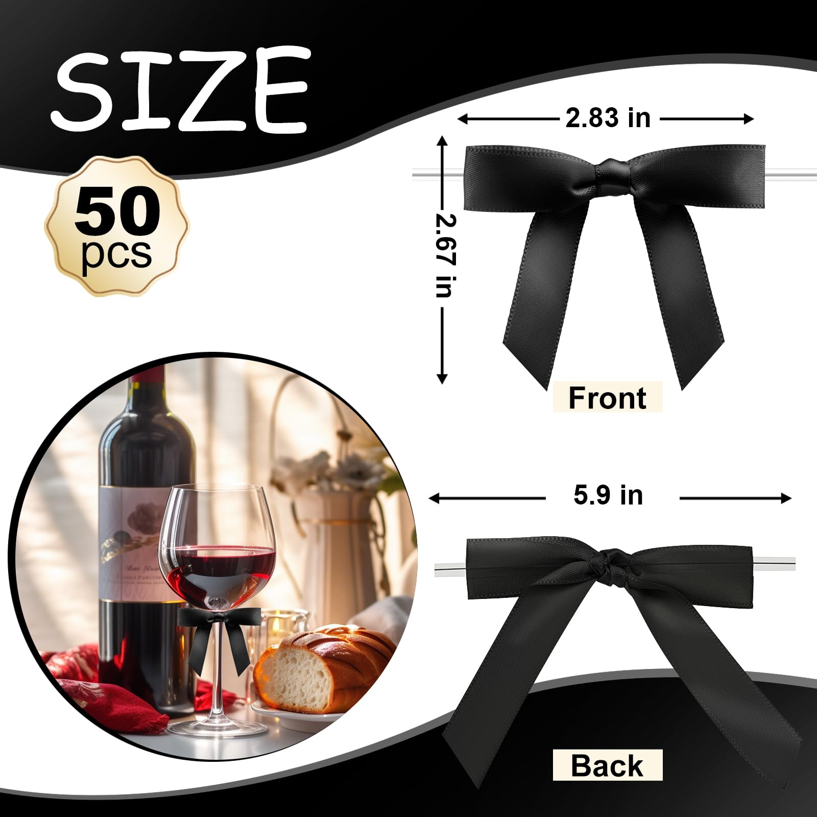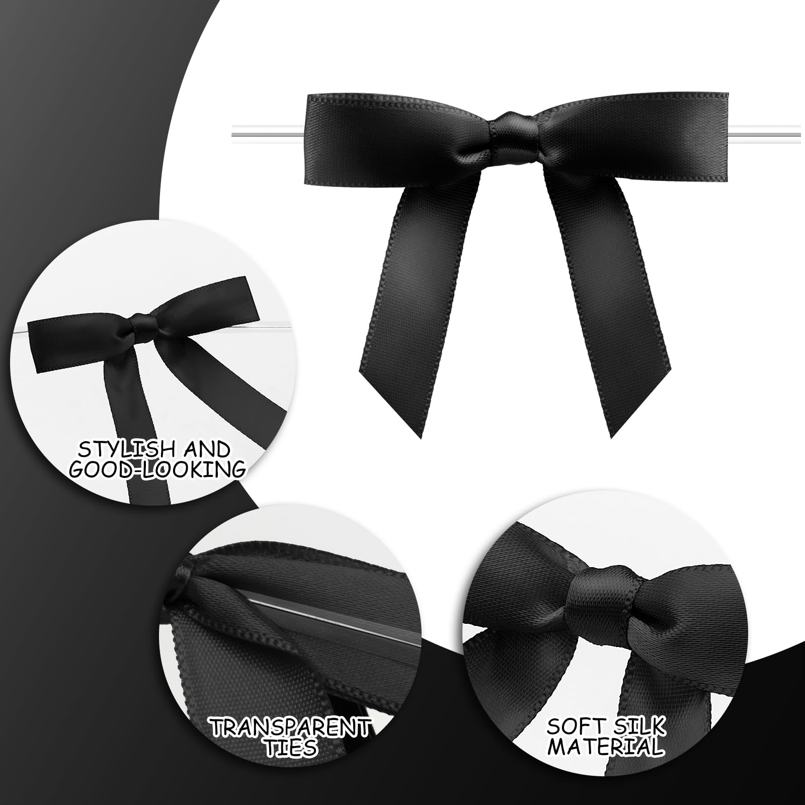 【 Package Content 】 You will receive 50 pieces black satin bows with twist ties. Saving time from having to make the bows yourself.