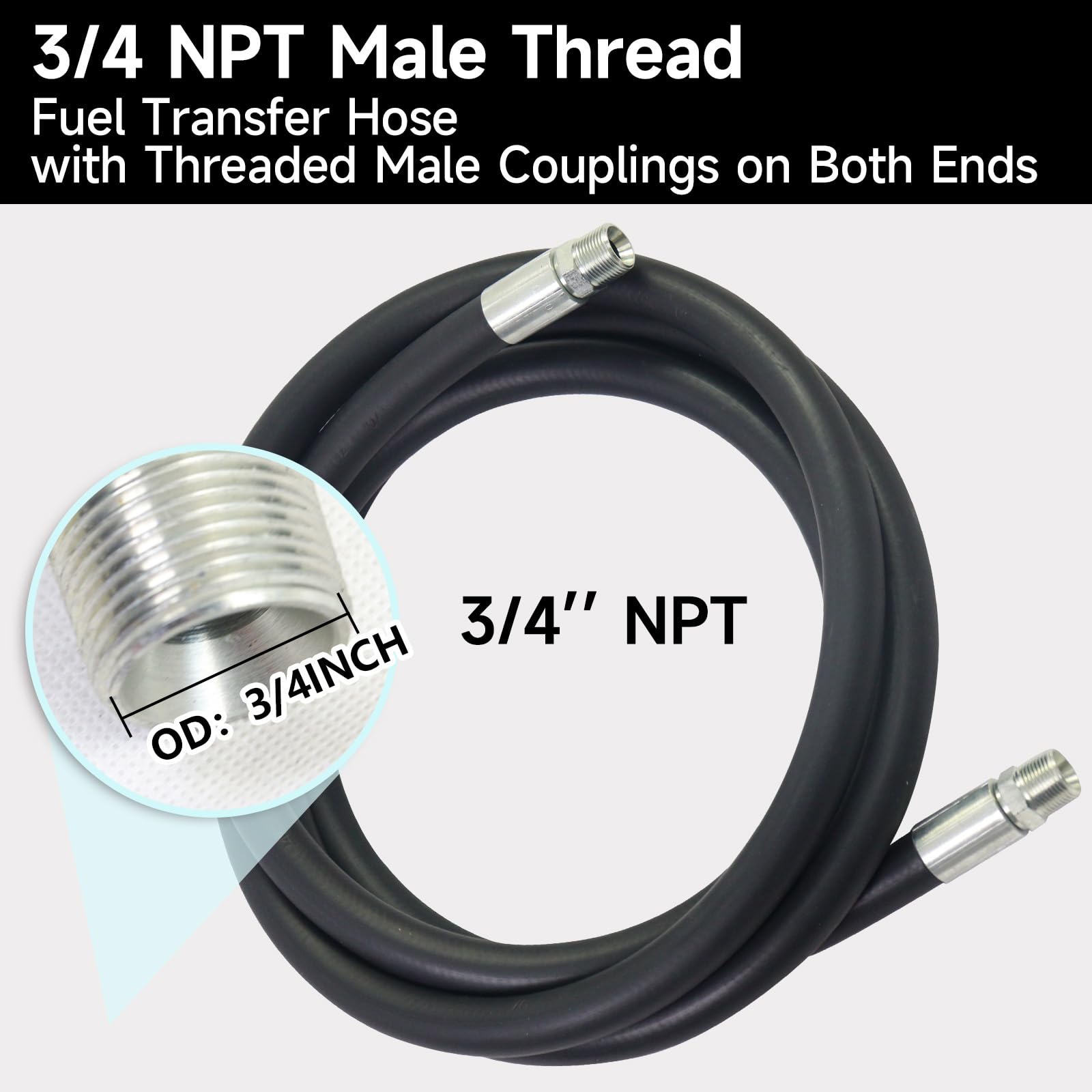 Wide Compatibility and Safety: Featuring 3/4" NPT threading, this hose is compatible with a variety of fuel transfer equipment, including pumps, nozzles, and tanks. It provides a secure, leak-free connection for safe and efficient fuel transfers, reducing the risk of spills and leaks.