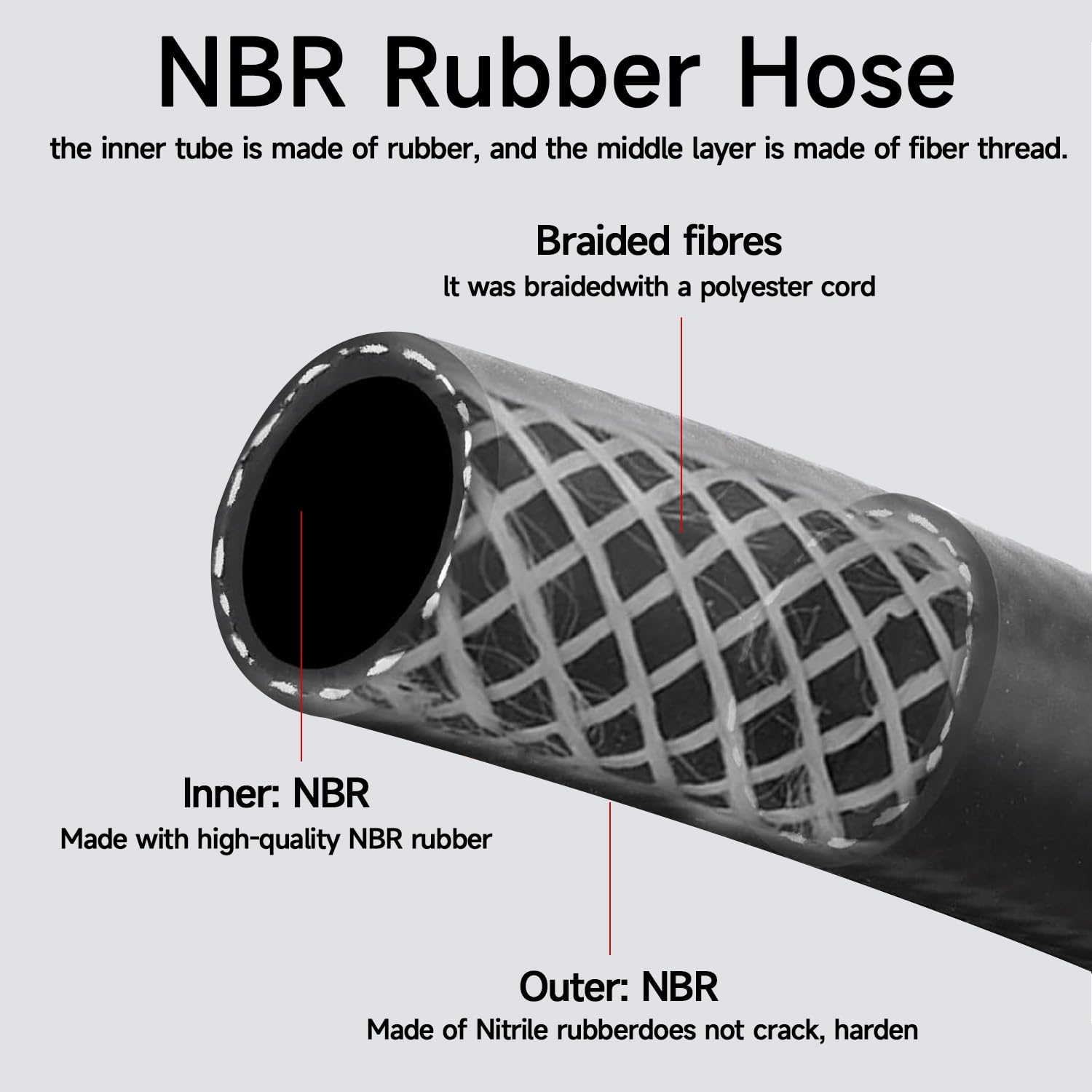 Premium Material Construction: Crafted with a nitrile rubber inner layer, a stainless steel braid for reinforcement, and a PVC/nitrile blended rubber outer layer, this hose is built to endure various fuels and fluids. It offers exceptional durability, flexibility, and abrasion resistance for a long service life.