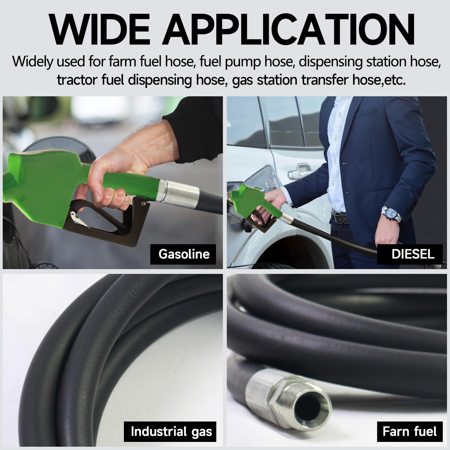 Versatile Applications: Specifically designed for fuel transfer, this hose can handle gasoline, diesel, biodiesel, and other compatible fuels. It’s perfect for industries such as automotive, agriculture, construction, and marine, where reliable fuel transfer is essential.