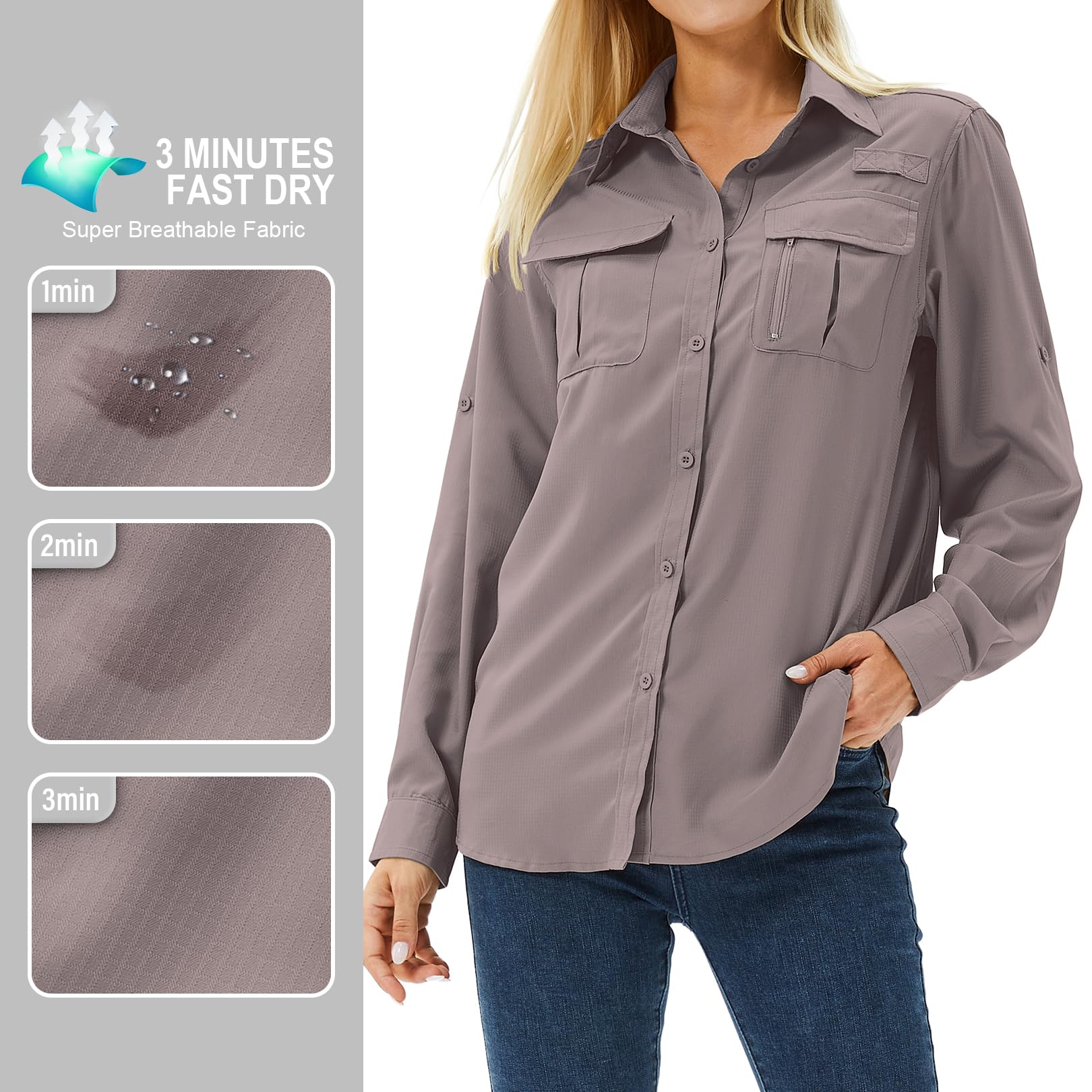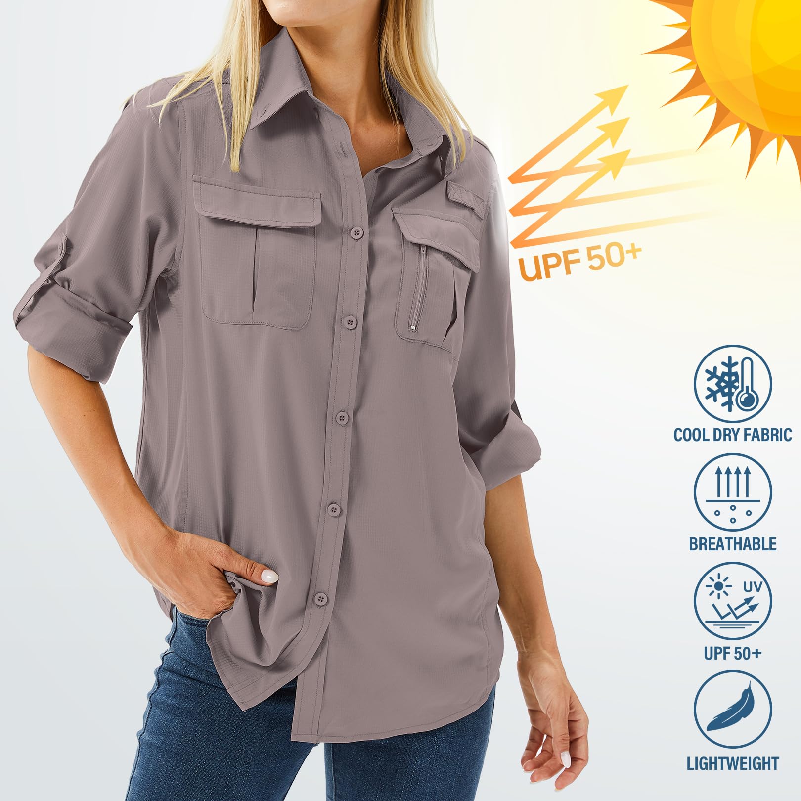 Sun Protection Clothing Women:Our UPF 50+ sun protection shirts for women use Sun Shield Technology UPF 50 fabric to protect your skin from UVA/UVB rays.Perfect for your backpacking,camping,fishing,or travel adventures,they keep you cool and safe.