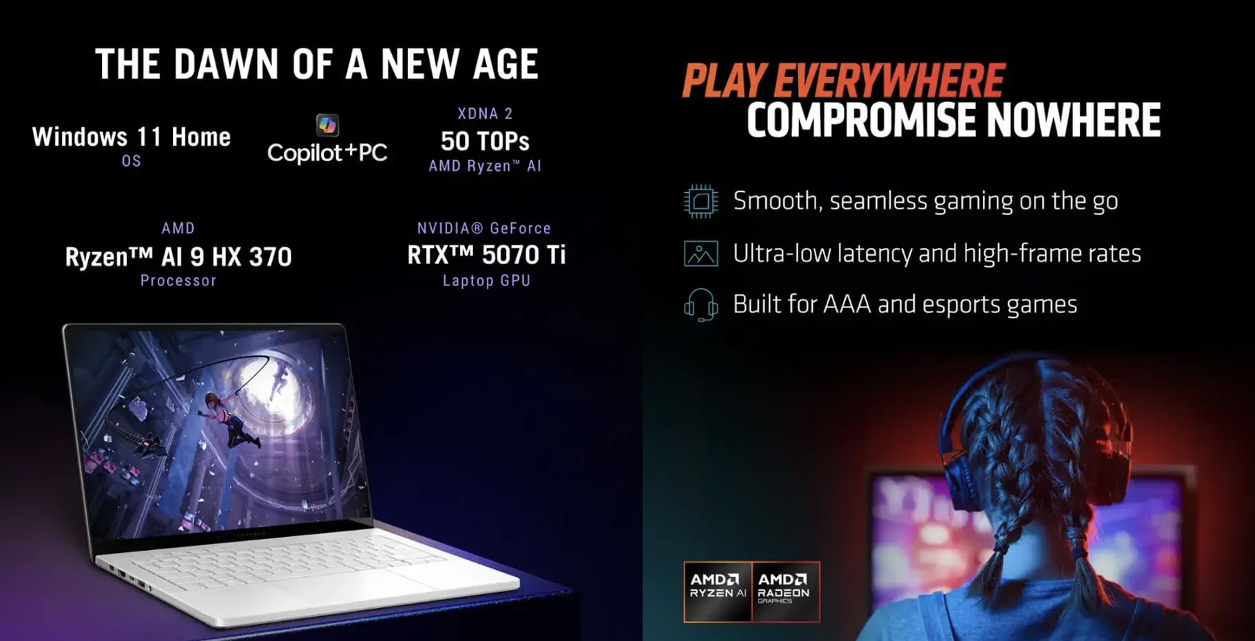 Zen 5 Gen Ryzen AI 9 HX 370 2.00GHz Processor (upto 5.1 GHz, 24MB Cache, 12-Cores, 24-Threads, ); NVIDIA GeForce RTX 5070 Ti 12GB GDDR7 Dual (Integrated+Dedicated) Graphics, VR Ready