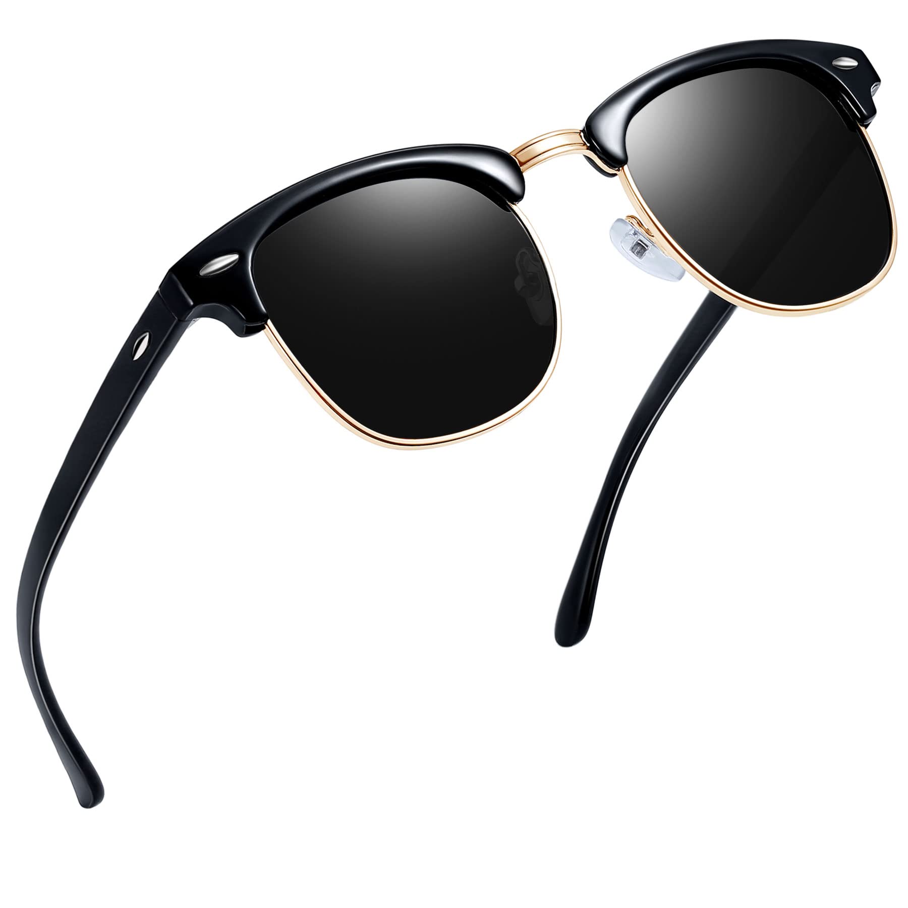 PERFECT BROWLINE STYLE, DURABLE AND COMFORTABLE: Joopin classic semi rimless sunglasses, resin materials, sturdy metal plastic frame, soft silicone nose pads, double-burst metal hinges, TAC lens, perfect lightweight black and gold sunglasses creation that keeps you in love with it. Joopin black lens sunglasses are a good choice for your when you go outside for shopping, beach, parties, driving, running, fishing, cycling, any outdoor activities