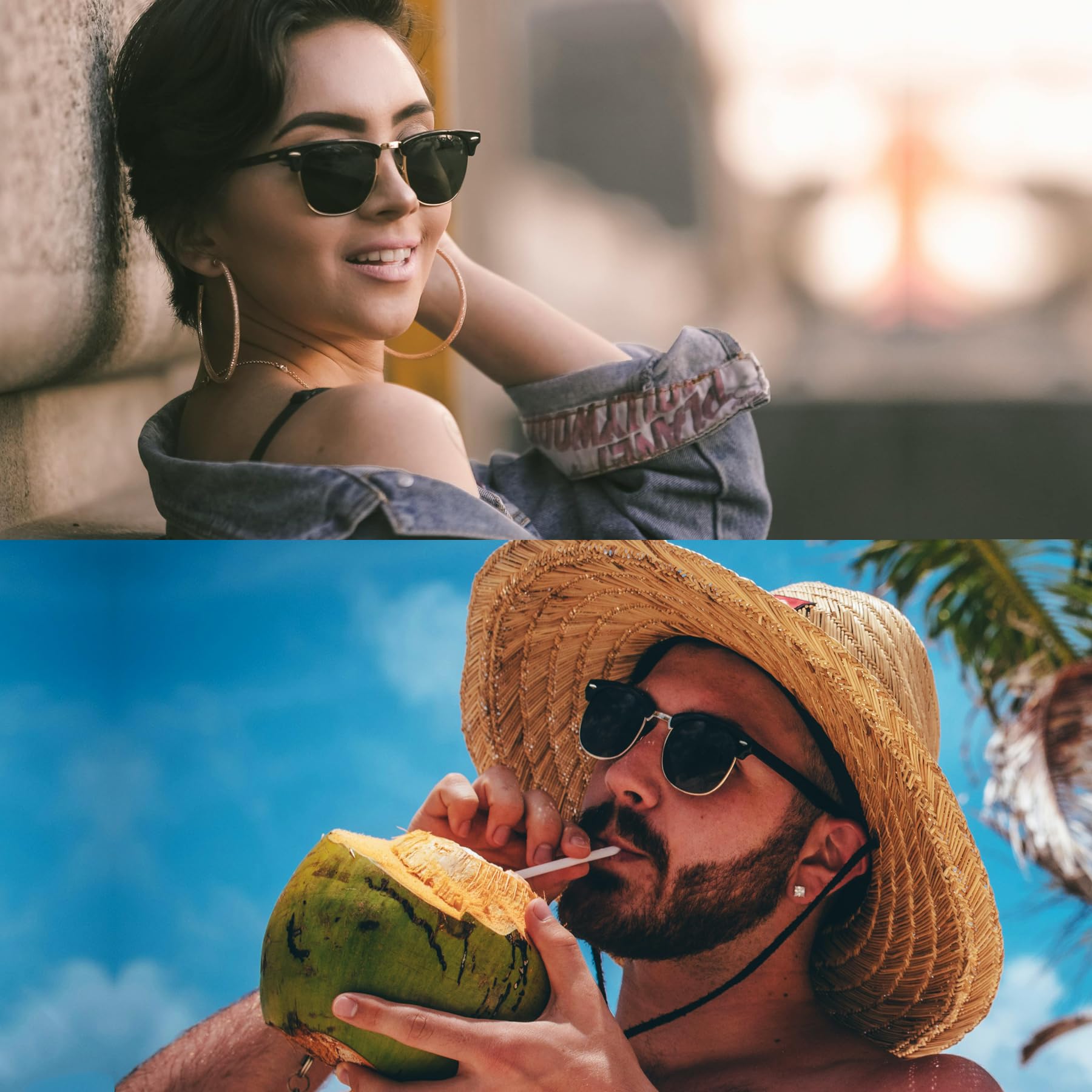 TIMELESS UNISEX CLUB MASTERS SUNGLASSES: Joopin club masters sunglasses men women give you a unique wearing experience. This chic browline with classic horn rimmed retro sunglasses are worn by many superstars. Delicate unique black shades make you more elegant and lovely. Joopin exclusive precise cut of shady rays sunglasses fits all face shapes, the icing on the cake for your outfit with this cute sunglasses. Feel the colorful life with Joopin trendy sunglasses