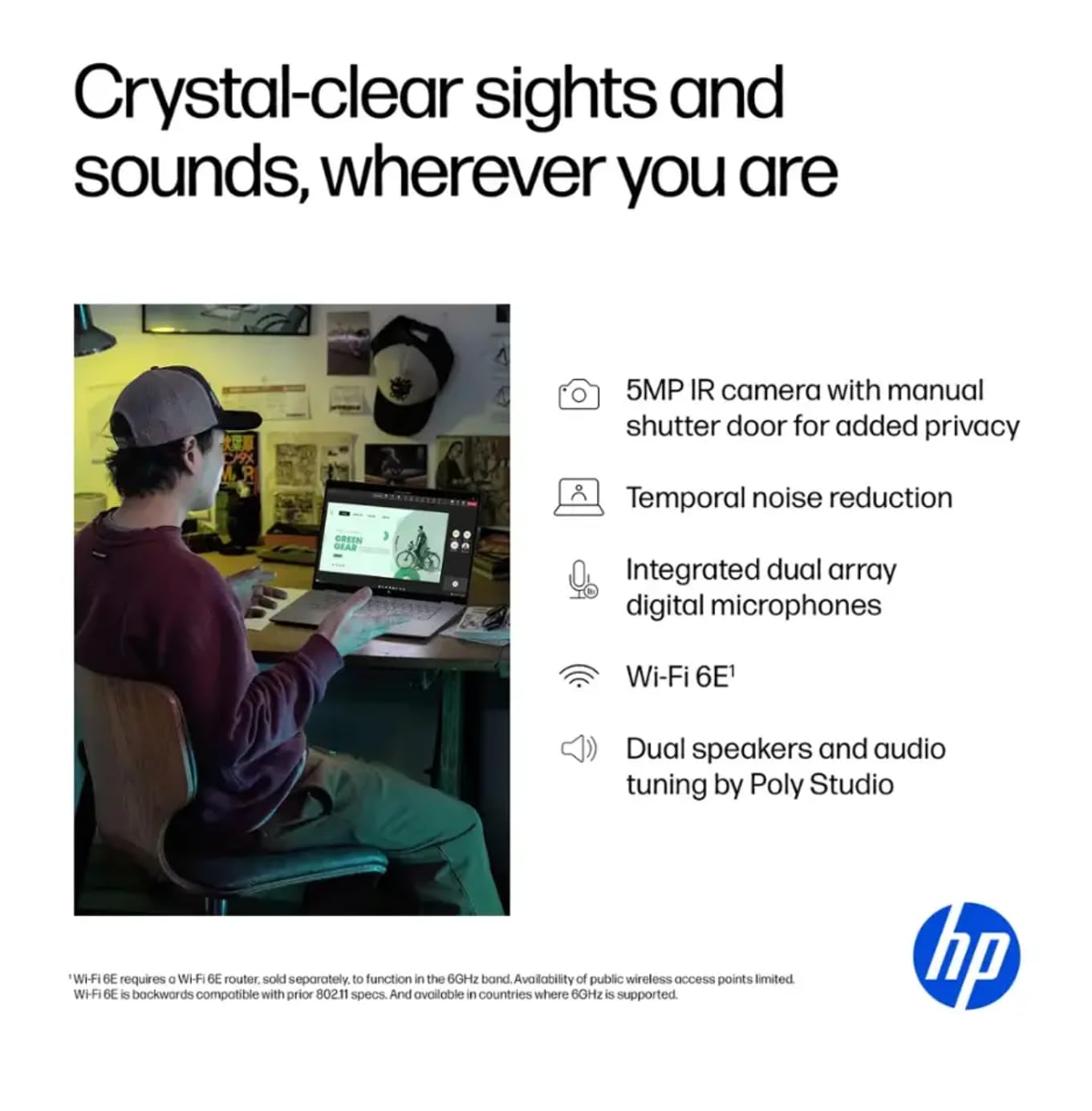 【Premium Features】Poly Studio-tuned dual speakers with DTS:X Ultra, HP 5MP IR camera with HDR privacy shutter, Wi-Fi 6E, Bluetooth 5.3, and versatile ports (USB-C 4, USB-C 3.1, USB-A 3.1x2, HDMI 2.1).