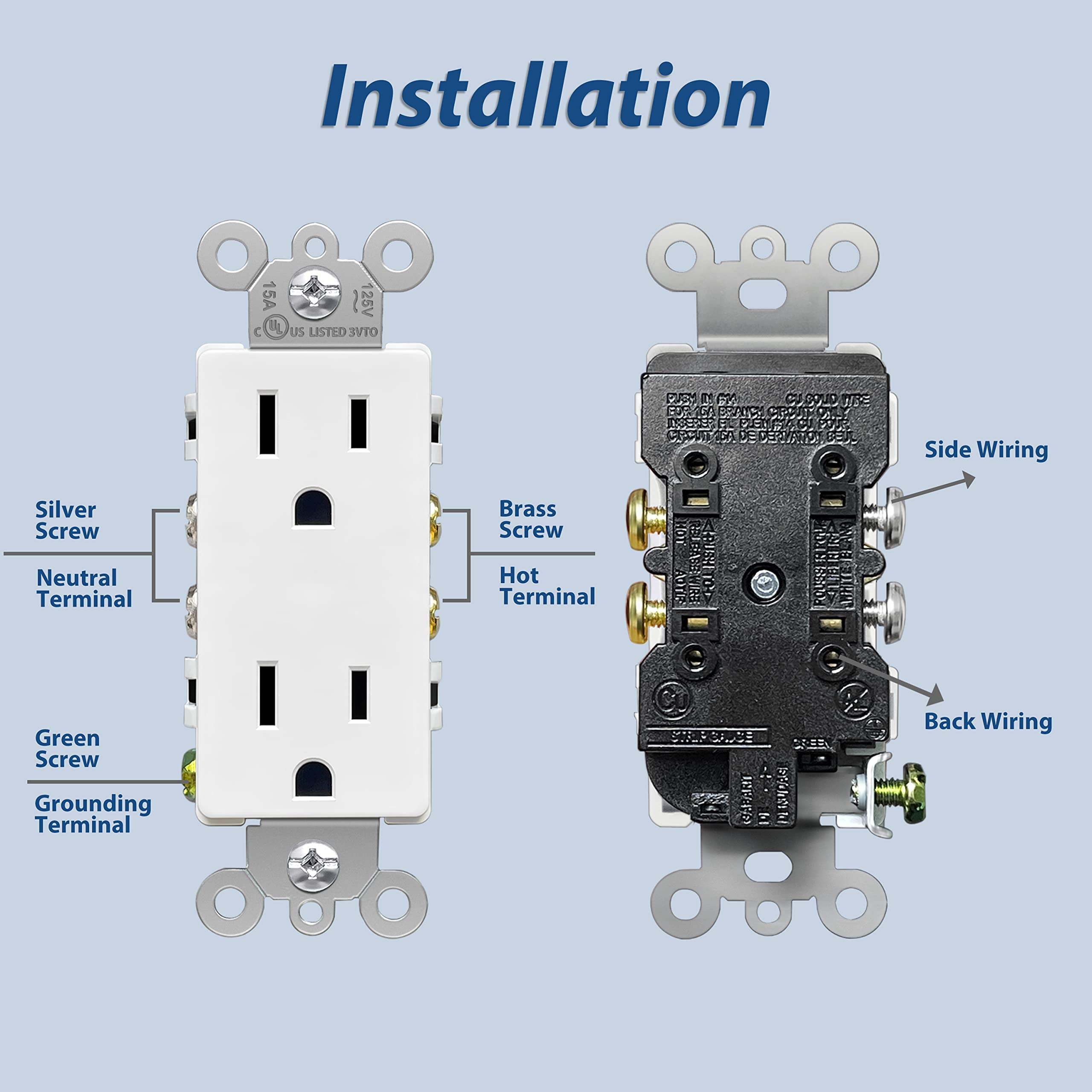 Introduction: ELECTECK's comprehensive Residential Grade Receptacles portfolio includes devices rated for all residential applications in a variety of standard configurations. All decor receptacles are designed with thermoplastic construction and feature a shallow build for maximum wiring room. Each decor is also equipped with break-off plaster ears and tabs to allow for easy alignment and 2-circuit conversion. The Decor receptacle is designed for a chic appearance, quick installation and durability. Its impact-resistant thermoplastic design allows for a long service life and high performance in homes, offices, schools and other settings. Features: Use all of your outlets Requires no wires or batteries to install. Leaves all outlets free for use. Safety Fireproof poly-carbonate housing greatly reduces fire risk. The product has UL certification. Quality Assurance Every Decor Receptacle Outlet with Wall Plate is individually tested before it leaves the factory assuring buying confidence and trouble free operation for years to come.