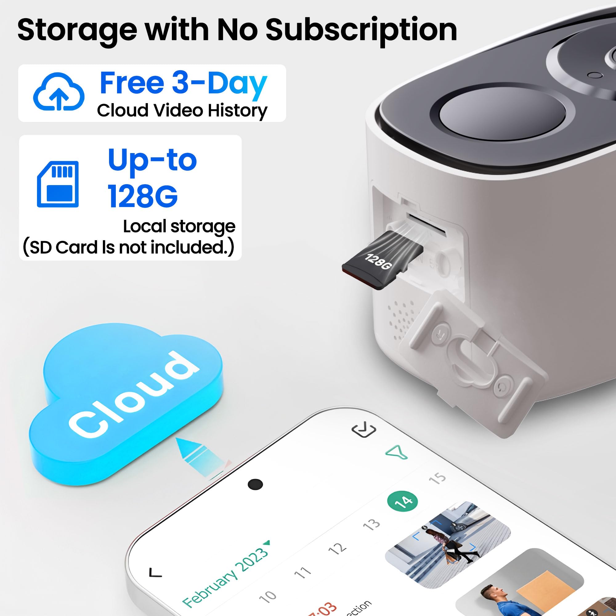 【Free Cloud Storage & SD Card Support – Safeguard Your Footage】Take advantage of free cloud storage with no additional subscription fees, ensuring your crucial recordings are always secure and accessible. For added flexibility, the camera also supports local SD card storage (up to 256GB, SD card not included), giving you more options to store and protect your data.
