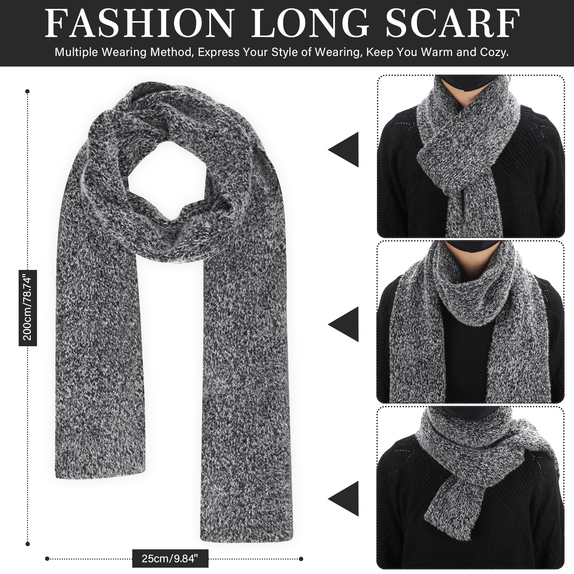 【Winter Warm Long Scarves】Soft, Warm, Lightweight and Breathable. The knitted long scarf has good elasticity and Anti-Pilling performance, allowing you to express your style in a variety of ways of wearing. Very suitable for travel or as a gift.