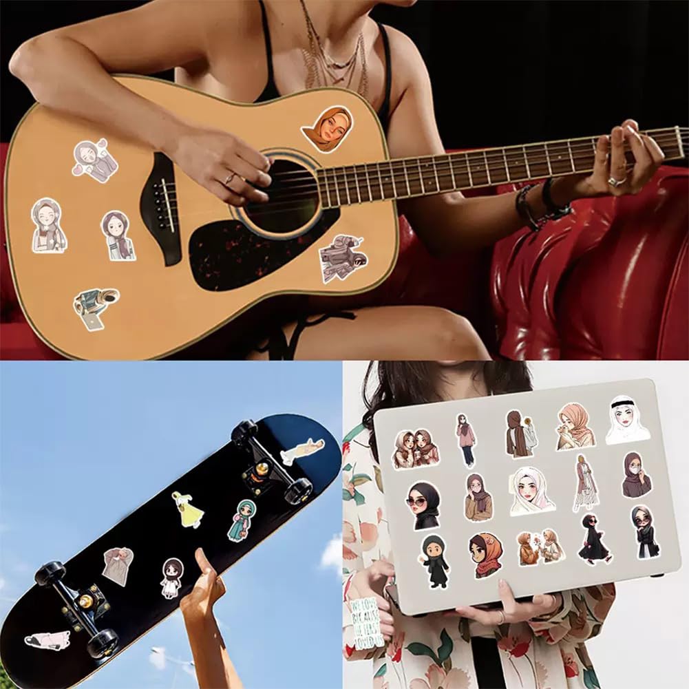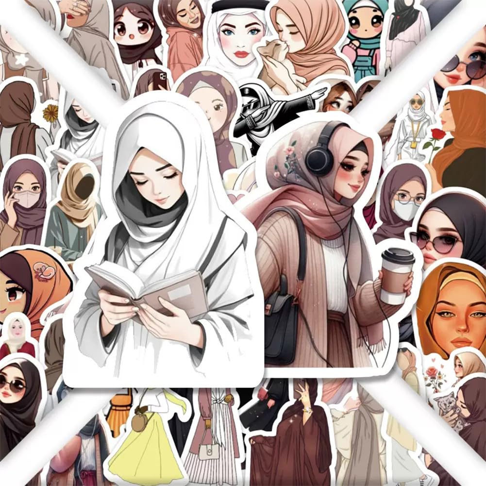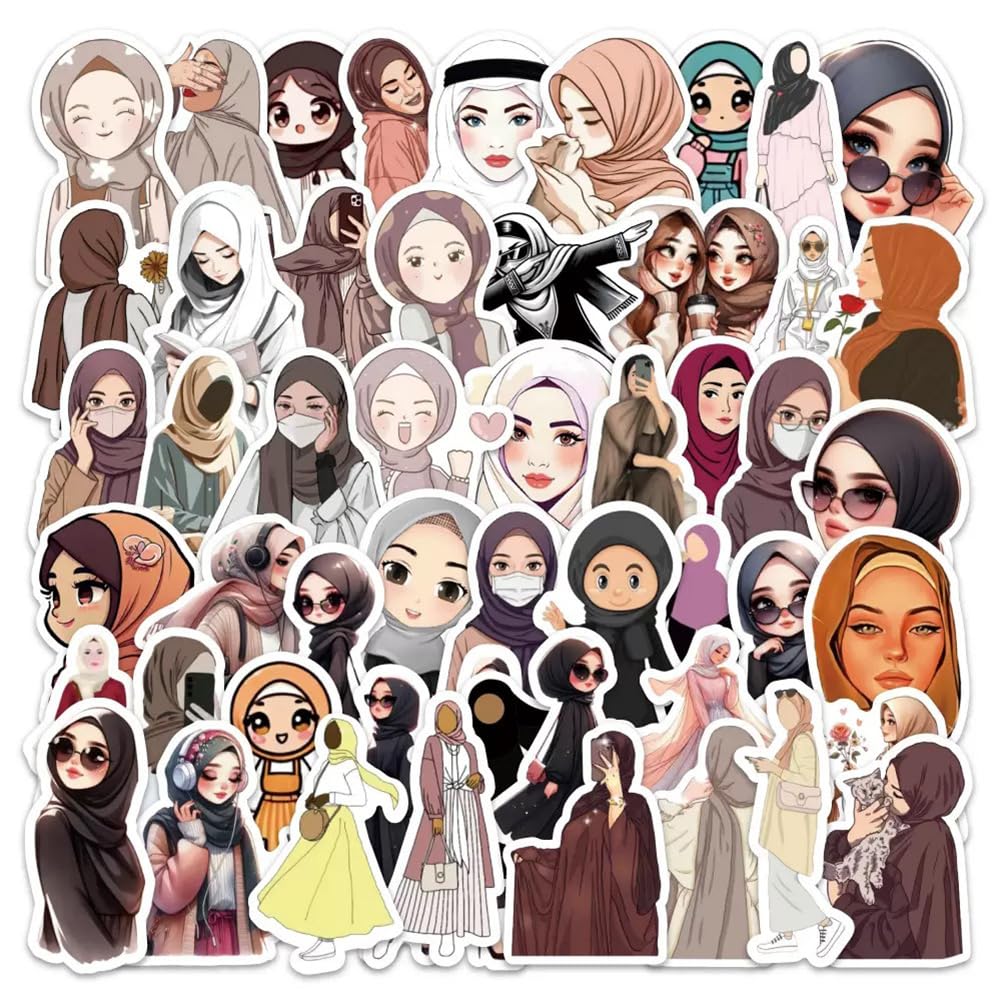 These Muslim Hijab girl theme Stickers can be attached to laptop, suitcase, computer, skateboard, refrigerator, wardrobe, wall, guitar, car, motorcycle, bike, etc. Materials: Vinyl PVC. Sticker Quantity: 50 Pcs. Stickers Size: About 1.18--2.36 inch/3 cm --6 cm each. Package Size: 3.15 x 2.76 x 0.47 inch / 8 x 7 x 1.2 cm. Package Weight: 1.06 oz / 30 g. Features: 1, Clear picture and exquisite printing; 2, Can easily peel off and stick on other place; 3, Sun protection and Waterproof! The color hardly fades out; Steps to use? 1, Confirm the object to be sticked on; 2, Clean the surface of the object; 3, Get the stickers and tear off the bottom paper; 4, Firmly stick the sticker on the surface of the object, leaving no gaps; 6, If not properly pasted, you can tear it up and paste it again; Please Note: These stickers are not applicable to rough and uneven surfaces.