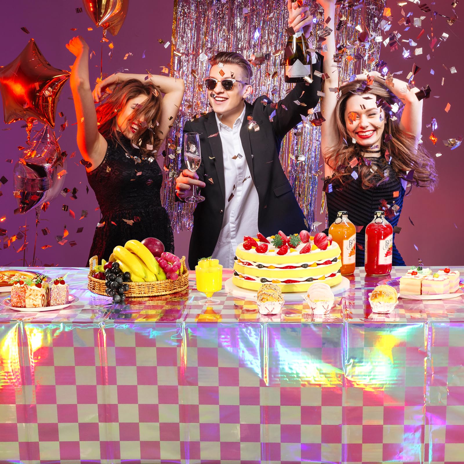 Multi-use Function and Occasions: Our iridescent pink party decorations are the perfect choice for almost any occasion, such as picnic, graduation, camping, wedding party, bachelorette party, 70 80 90’s time party and shining theme party, festival, and everyday use.
