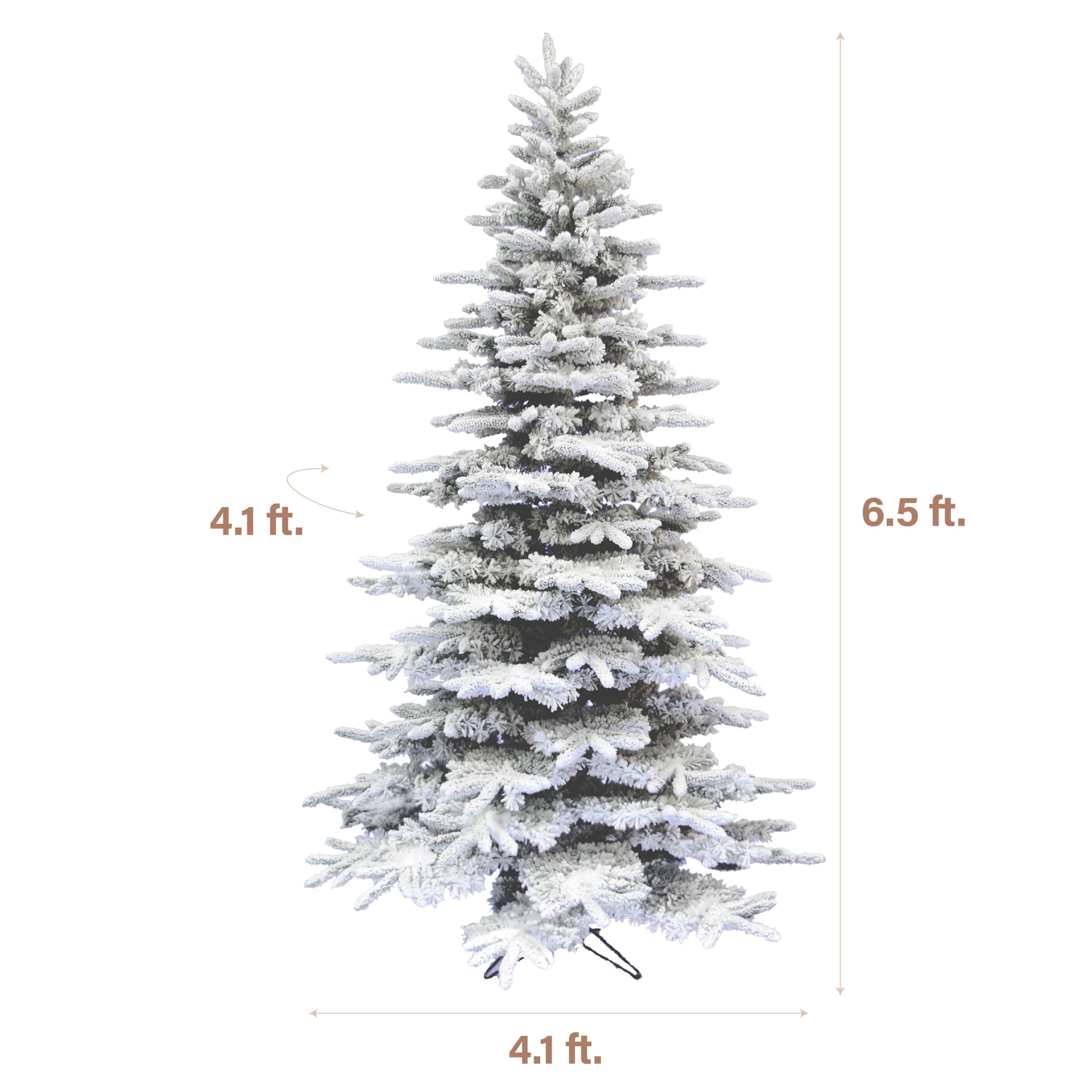 6.5-Foot Tall: Standing 6.5-ft. tall with a 50-in. diameter, this beautiful, snow covered, realistic christmas tree will fit perfectly in smaller spaces with standard 8-ft. to 9-ft. ceilings