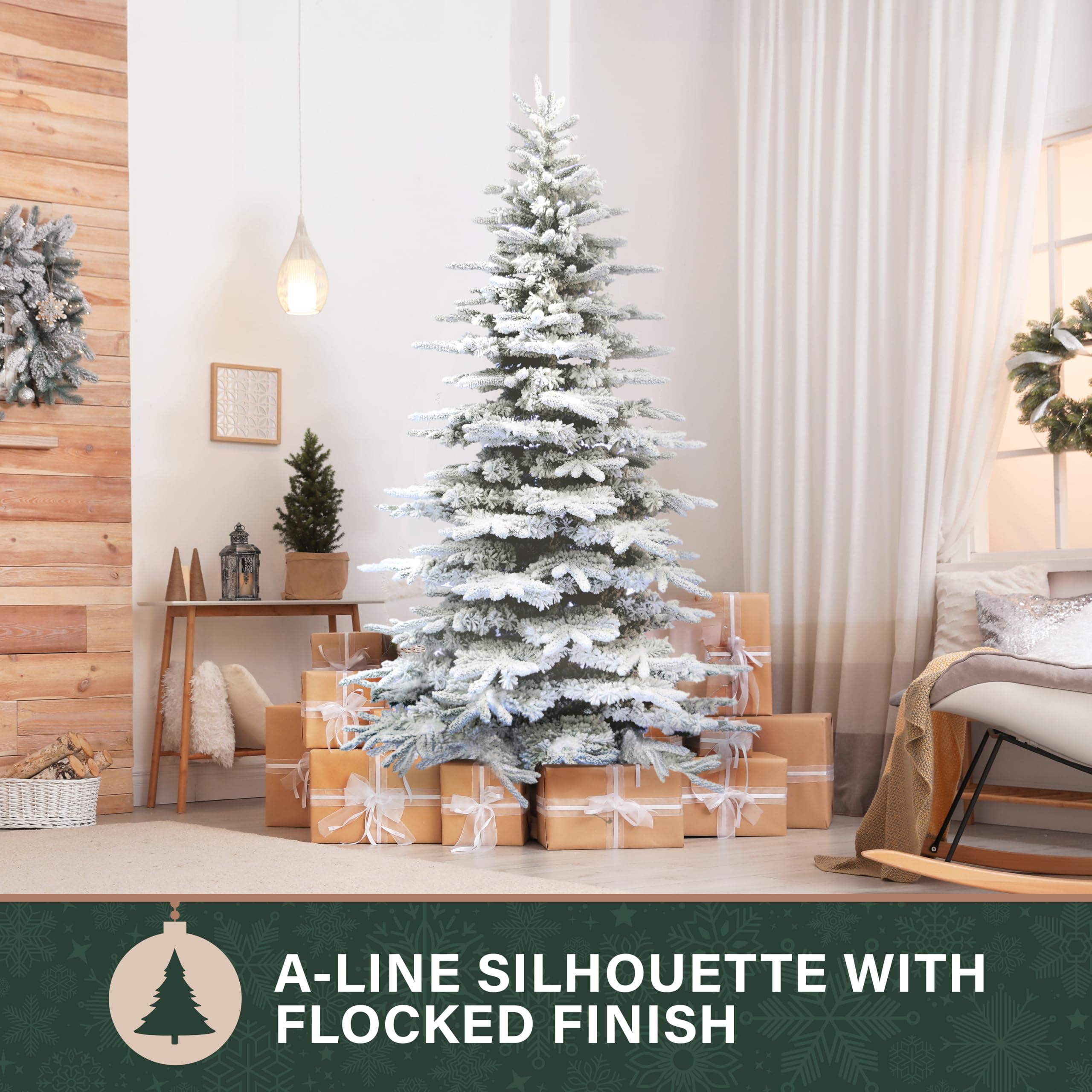 Heavily Flocked Christmas Tree: Our premium, fade-resistant flocking material gives the appearance of freshly fallen snow and the full and dense lifelike tips create the appearance of a traditional cut tree