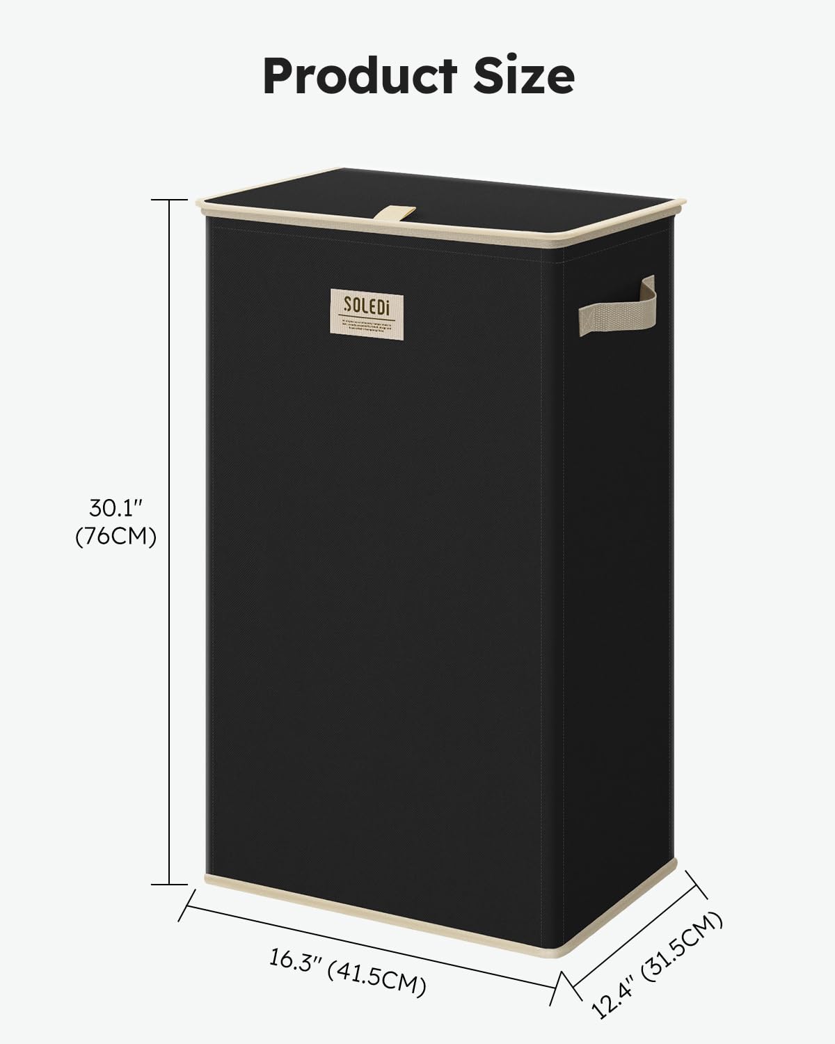 【100L Super Capacity】SOLEDI clothes hamper standing size 16.3"L×12.4"W×30.1"H, 100L large capacity clothes bin to meet the week's change of clothes storage, reduce the number of weekly trips to the laundry room. 100L tall laundry basket is large enough to hold all the family member's clothes or children's toys. Good choice for campus dorms or family life.