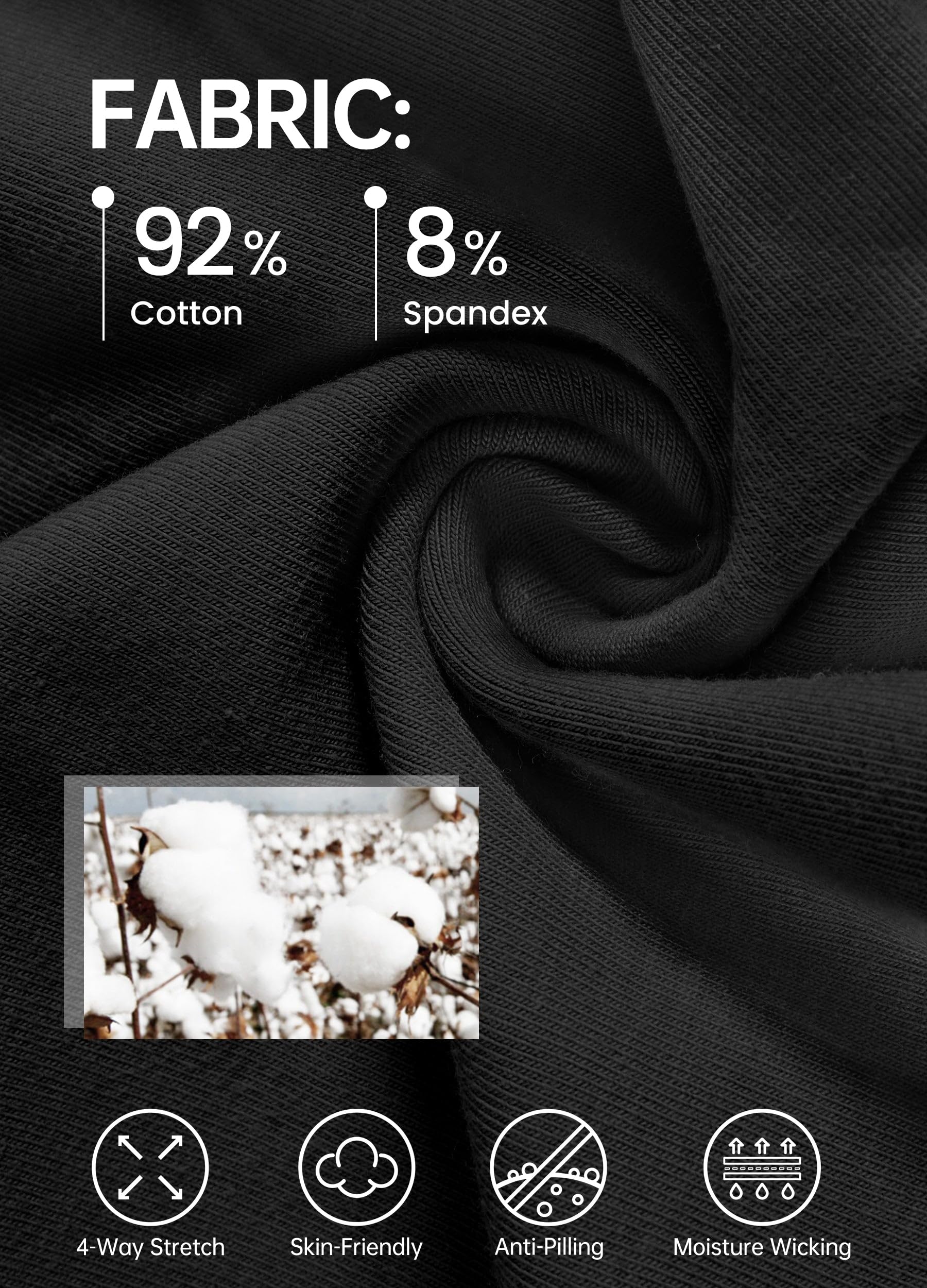 Skin-friendly and lightweight cotton blended fabric wicks moisture away from your skin, keeping you from getting damp and chilled