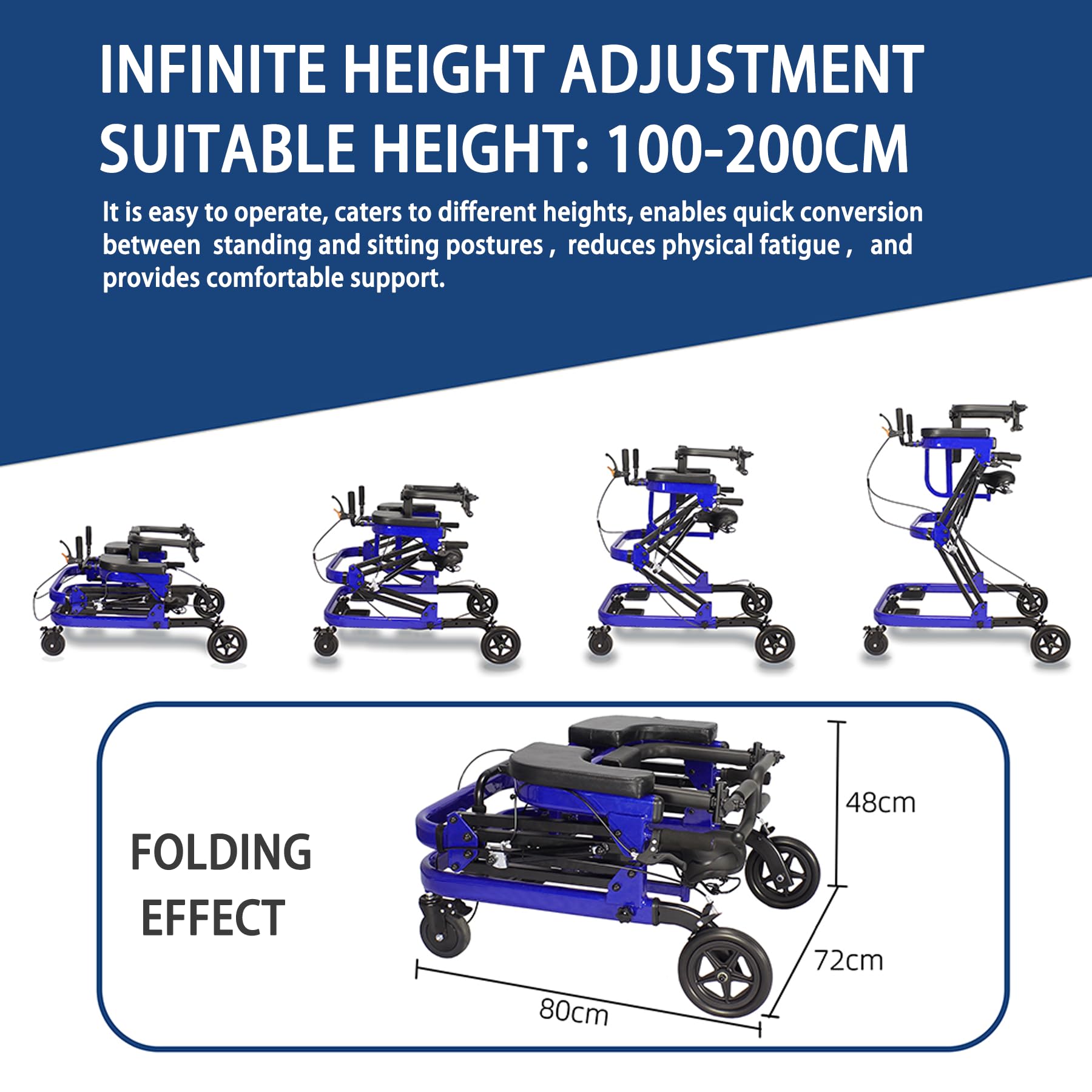 Three-in-One Rehabilitation Walker: Combines standing, walking, and push cart training to support stroke victims, hemiplegia patients, and individuals recovering from injuries or surgeries.