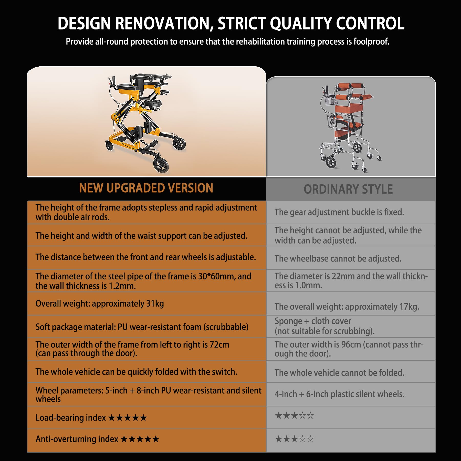 Enhanced Safety & Stability: Rigorous anti-tilt testing (forward, backward, and sideways) ensures stability, while a 150 kg load-bearing capacity provides reliable support for full-body standers and those relearning how to walk.
